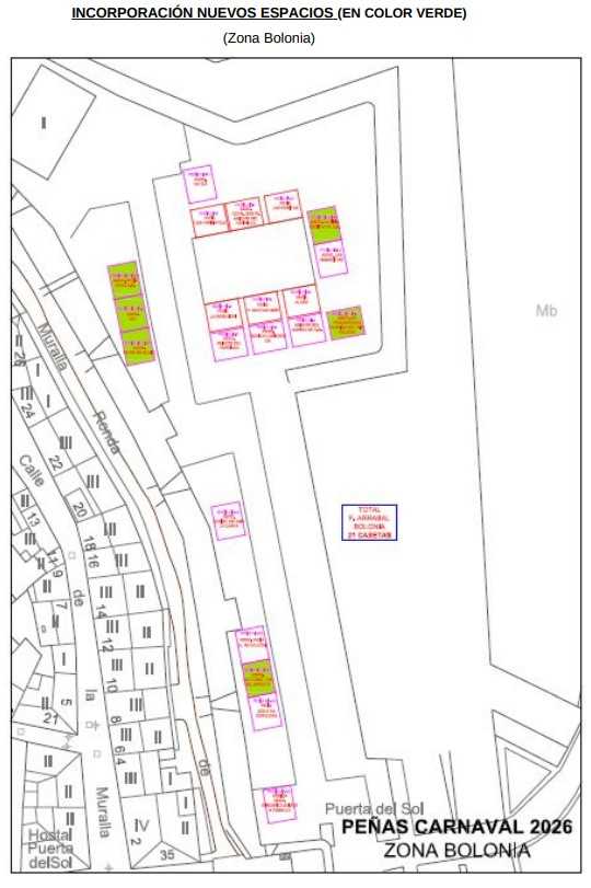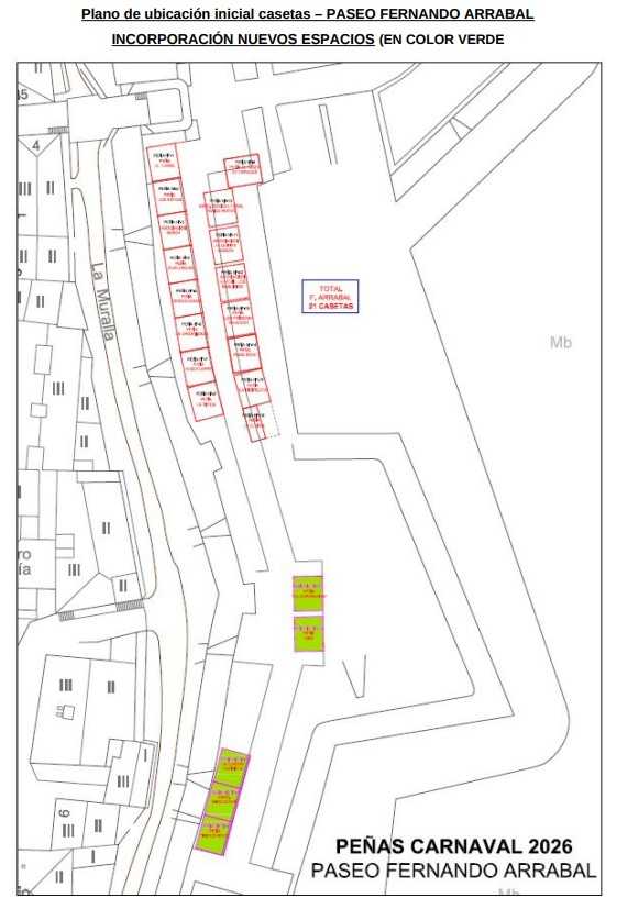 En esta última actualización, se ha asignado caseta a las asociaciones y peñas que faltaban en esta política del «café para todos» que ha desempeñado el consistorio tras la ya «lejana» polémica durante el sorteo de los espacios. Así pues, Pescadores, la Niña Bonita, Ra Ra Ra, Kaos, WC y Los del Arroyo se incorporan a Bolonia, mientras que La Cuadra Farinata, Mirojoven (No confundir con «Miróbriga Joven», que evidentemente ni se ha presentado, ni tiene interés en ello este año), Indecentes, G&G y La Cooperativa se van a la parte baja del Paseo «Fernando Arrabal».