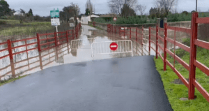 VÍDEO/ Cortada la zona de la Puentecilla por el desbordamiento del regato de San Giraldo
