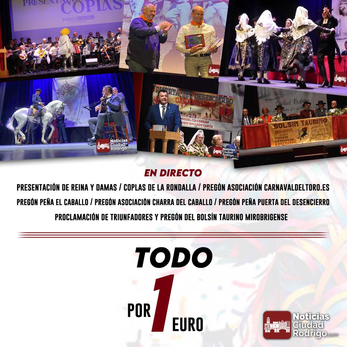 Si no te puedes acercar al Teatro Nuevo o prefieres evitar la lluvia y el frio viéndolo desde casa, la solución te la ofrecemos desde Noticias Ciudad Rodrigo, pues por tan solo 1€ puedes hacerte miembro en nuestro canal de YouTube y disfrutar de esta presentación, tanto en directo como en diferido (también ese único pago incluye todos los pregones del teatro y la presentación de las coplas de la Rondalla).