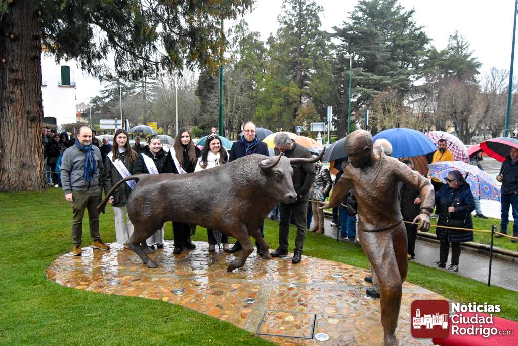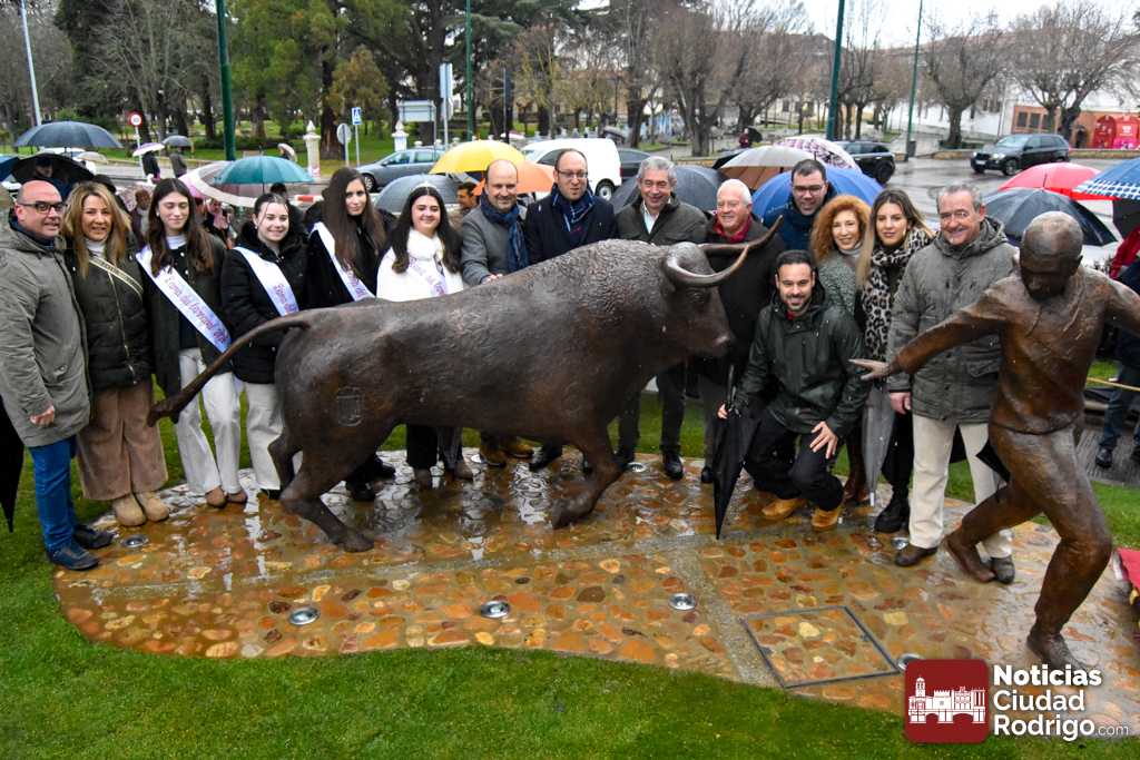 FOTOS/ Ciudad Rodrigo inaugura su Monumento al Carnaval del Toro en una lluviosa matinal