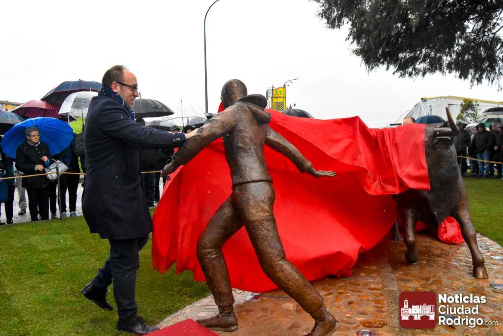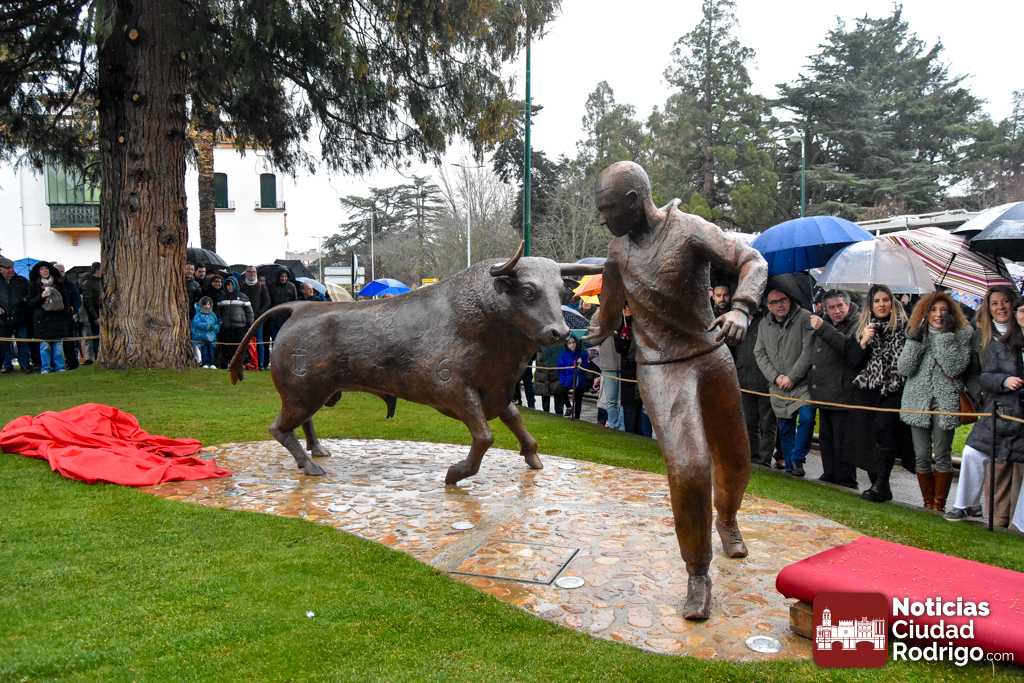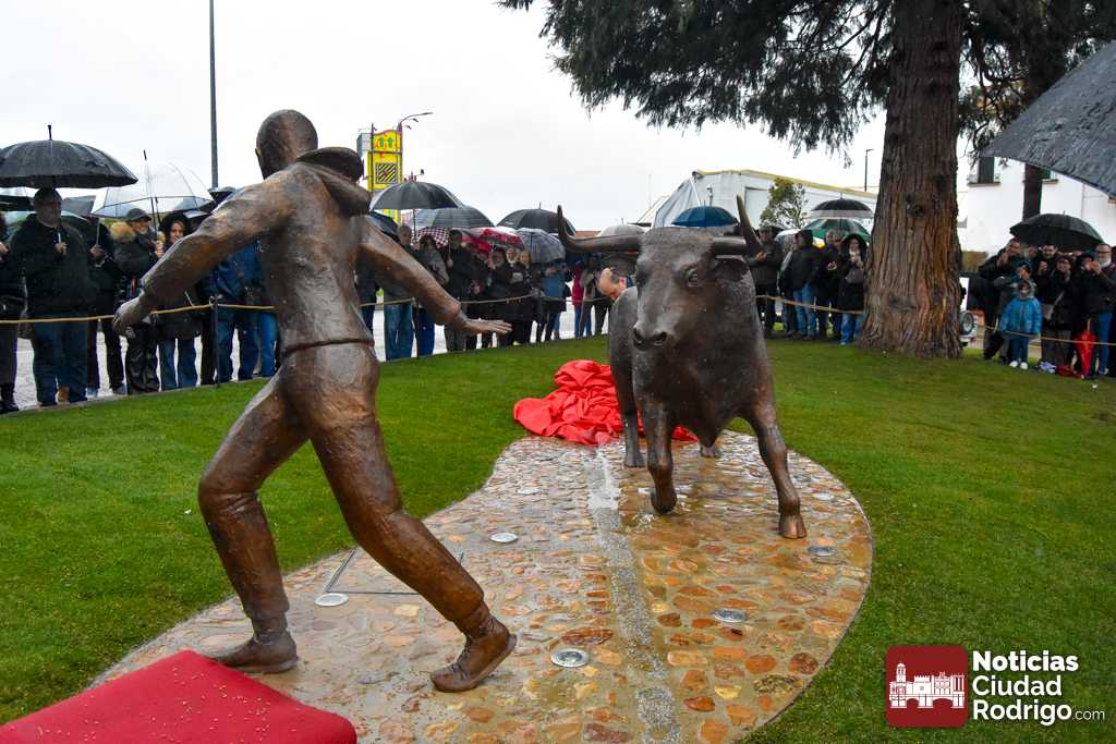 Ciudad Rodrigo inauguró durante mañana sabatina su Monumento al Carnaval del Toro. Una obra realizada por Sergio Alonso Moro que representa a un toro y un corredor, instalada convenientemente en la rotonda del Árbol Gordo, zona que ya suma su 4ª atracción junto con el maletilla, el garrochista y el sol del Sistema Solar a Escala.