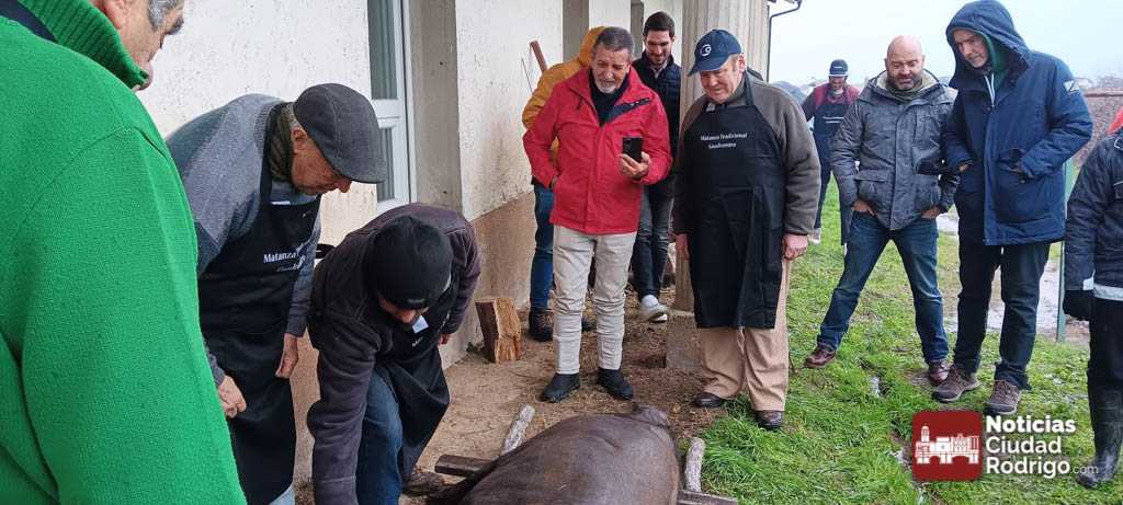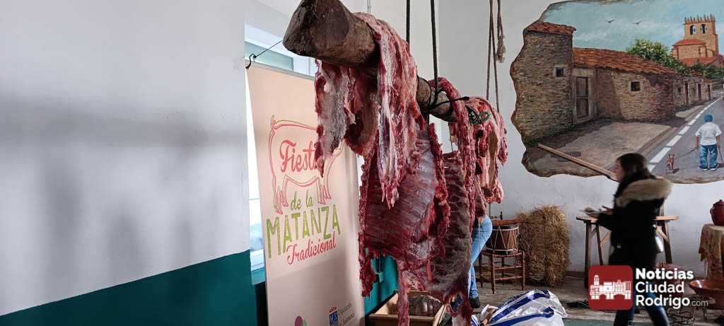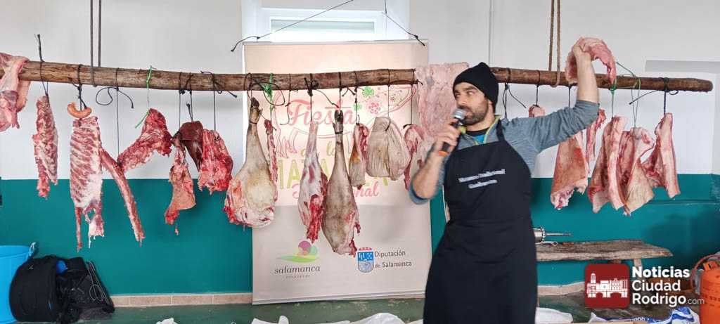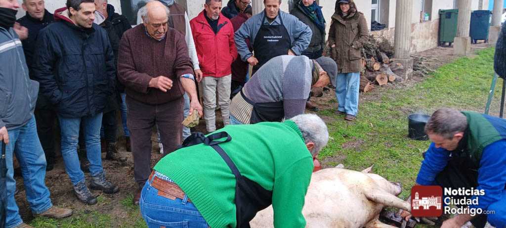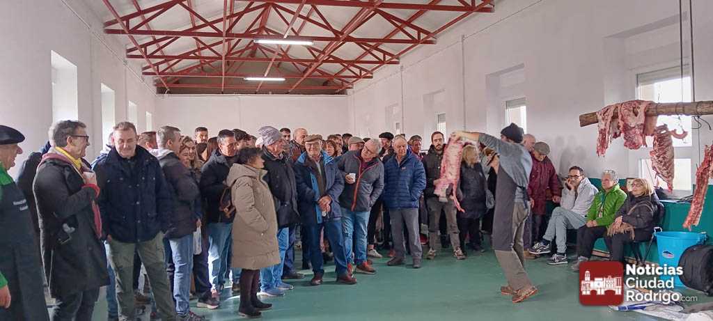 El chamuscado y despiece del cerdo se celebró en el exterior del salón multiusos de la villa y el resto de las actividades previstas en el interior. A media mañana, el Ayuntamiento invitó a los más de doscientos participantes a chorizo y queso. Los asistentes no sólo eran de la localidad, sino también de localidades cercanos o de otros puntos como Madrid o Asturias.