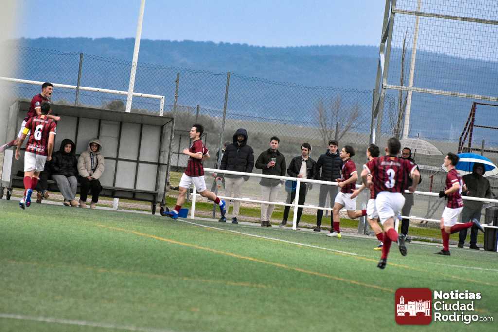Ya en la segunda parte el Ciudad Rodrigo CF salió mejor y fue a por el segundo gol, aunque sin generar nada en claro y con un juego un poco desordenado. En estos tramos el Salamanca CF UDS B tuvo varios momentos al contragolpe y se quedó cerca del gol en varias ocasiones, como en un mano a mano de Asier Domínguez que sacó la zaga local en la línea. El último tramo tuvo al Ciudad Rodrigo CF en la misma línea, aunque el conjunto visitante estuvo cerca de llevarse el encuentro en el descuento que evitó Pepo con un paradón.
