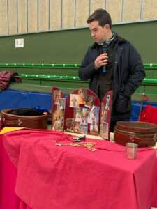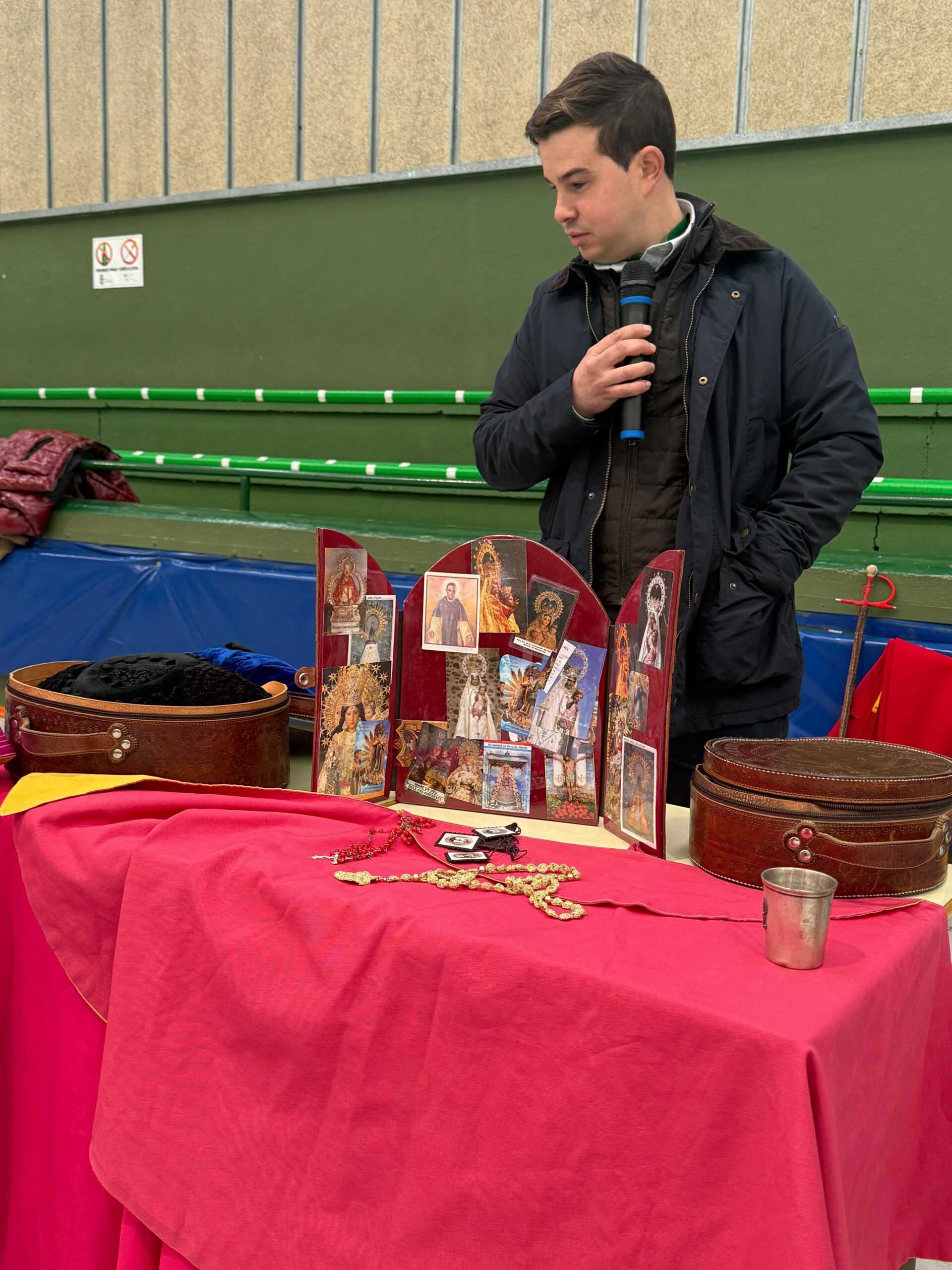 Durante esta visita, Manuel Diosleguarde se refirió a los diferentes aspectos de su procesión y al significado de los elementos que la rodean. De la misma forma, su mozo de espadas, Pedro Muñoz, relató como se prepara al torero antes de salir a la plaza, detallando el proceso de vestir el traje de luces y diferentes costumbres previas a la lidia, como el momento de recogimiento y oración ante un improvisado altar.