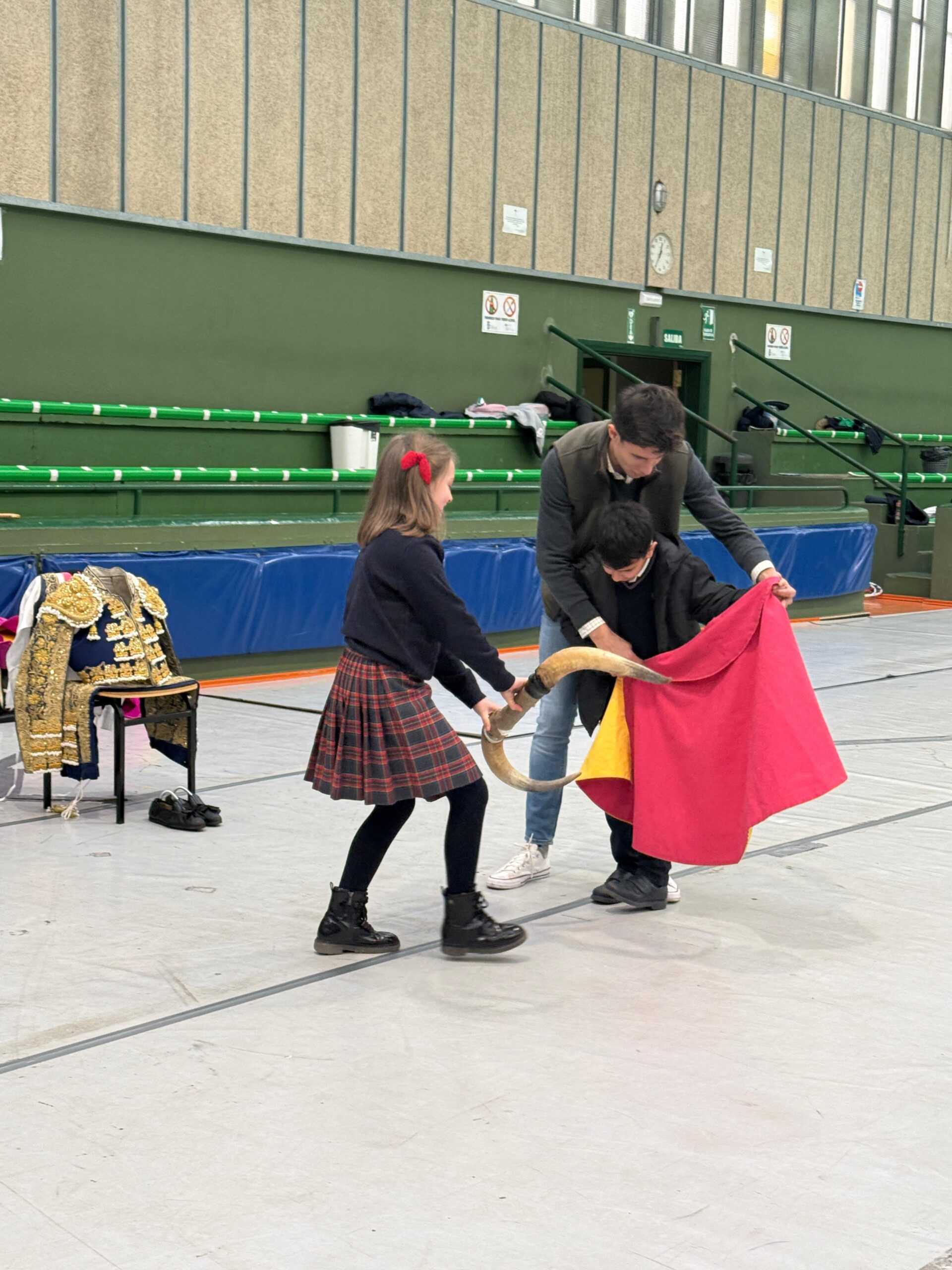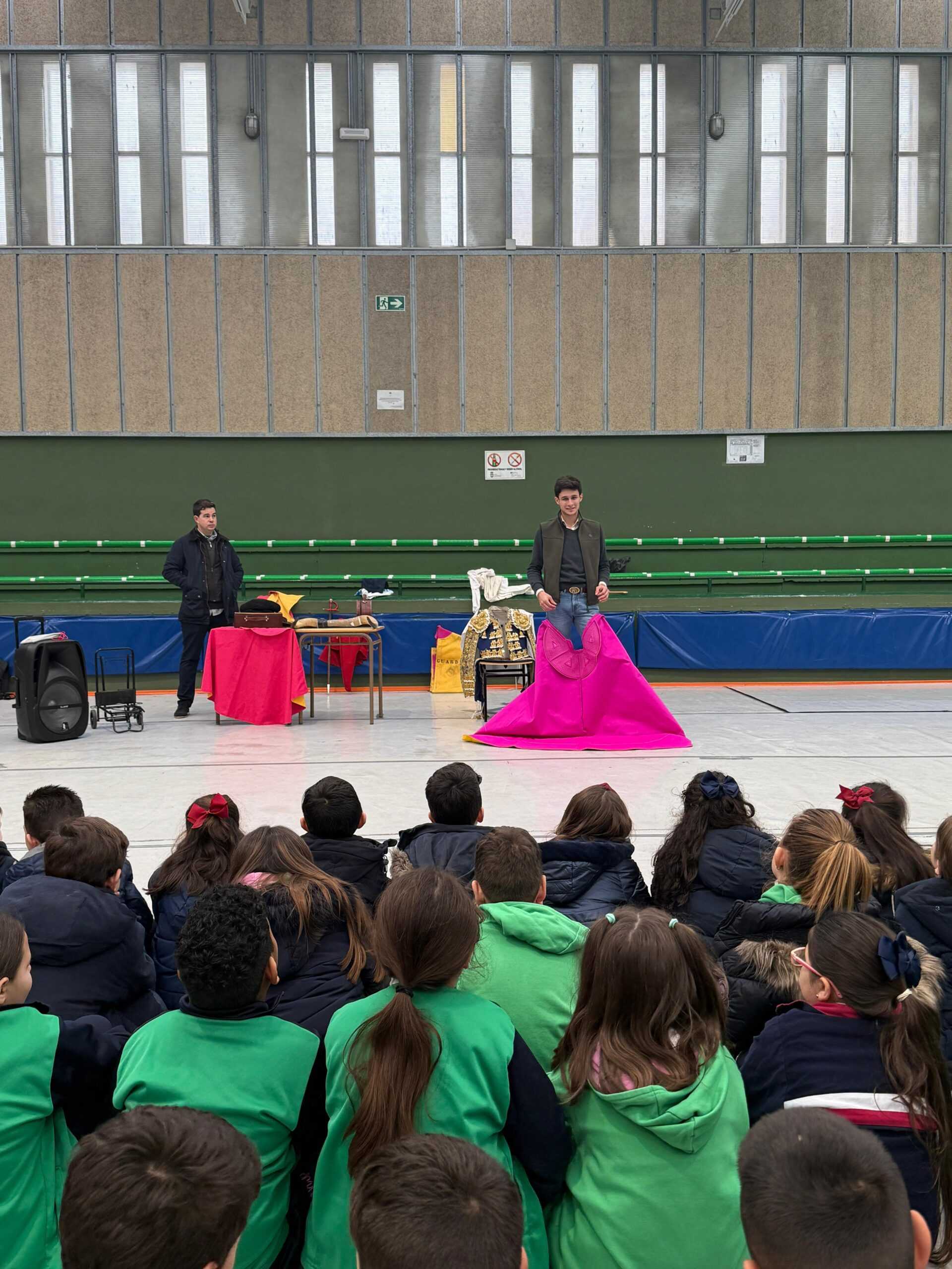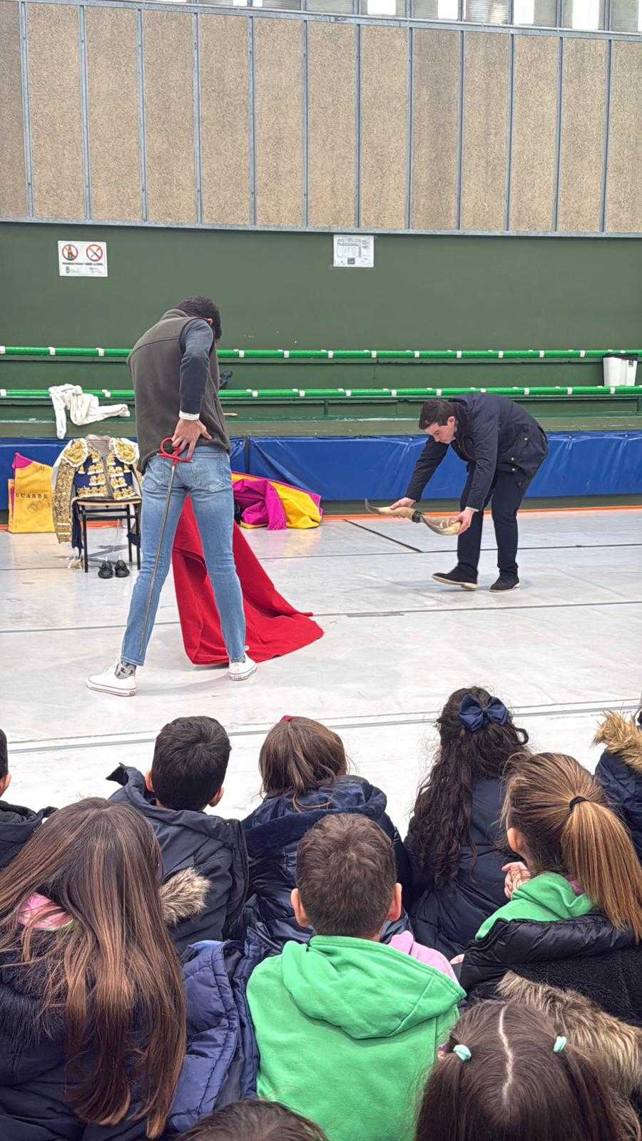 El matador de toros realizó una charla y una demostración práctica ante un alumnado que disfrutó con su visita