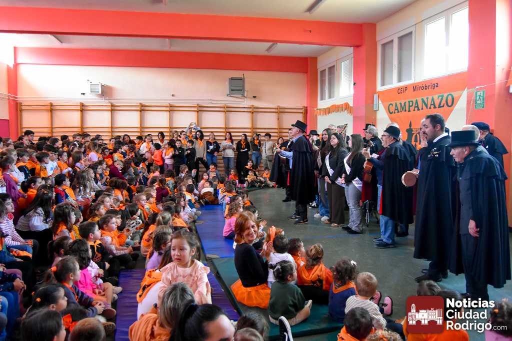 El Colegio Miróbriga celebró durante la matinal de Jueves de Casetas su particular inicio del Carnaval del Toro 2026. Un arranque que contó con varias actividades en una sala decorada para la ocasión y con todos los alumnos con el clásico pañuelo farinato anudado al cuello.