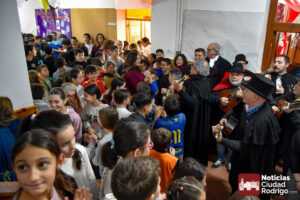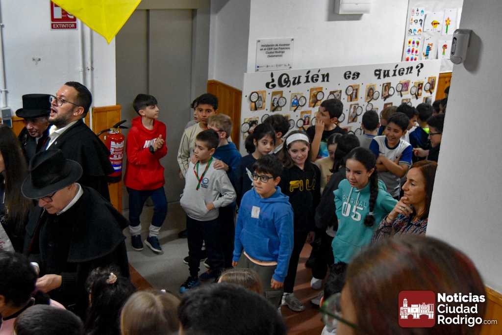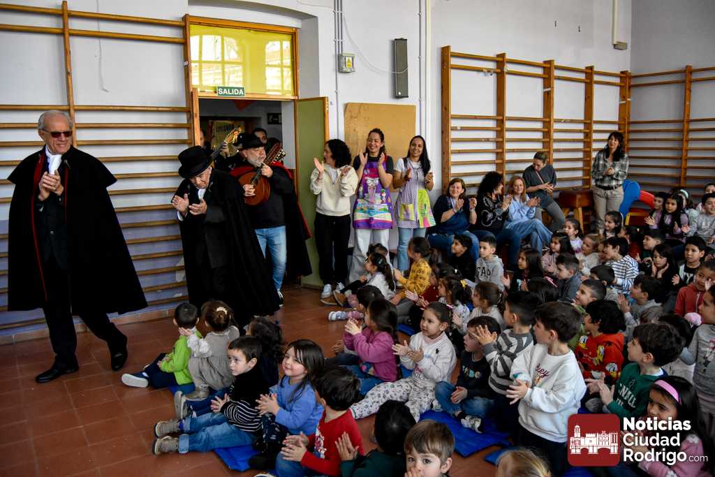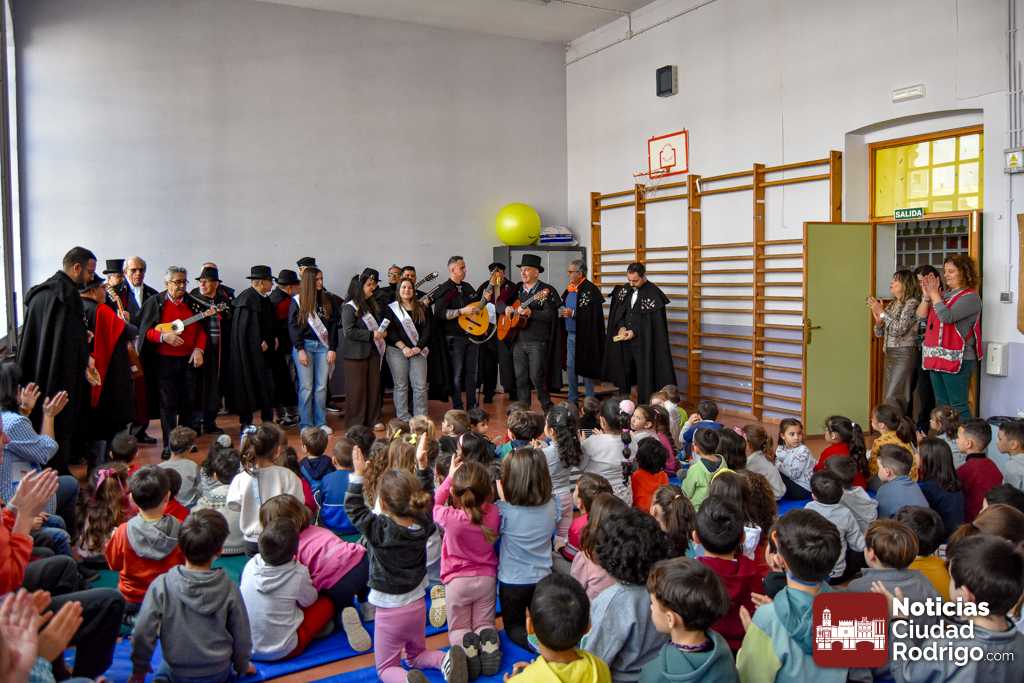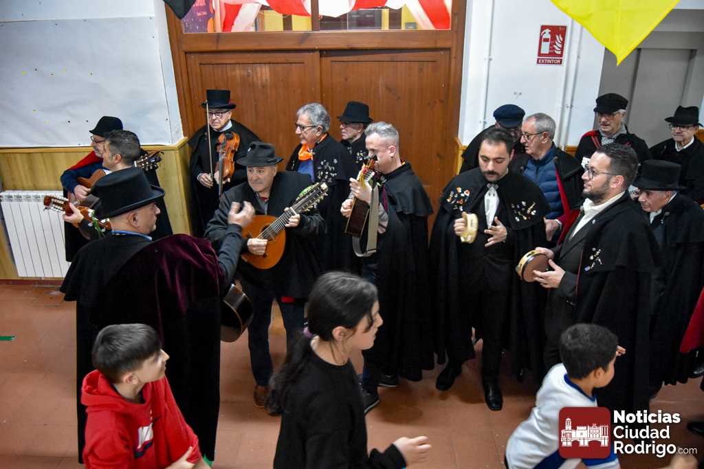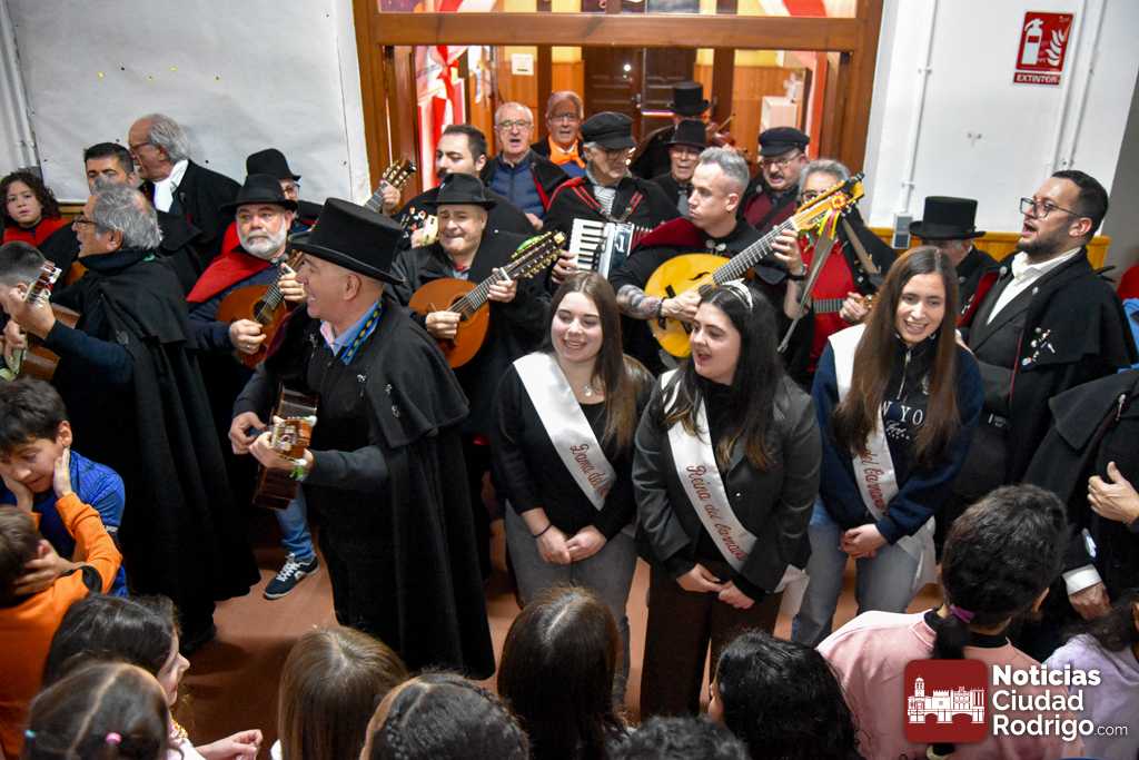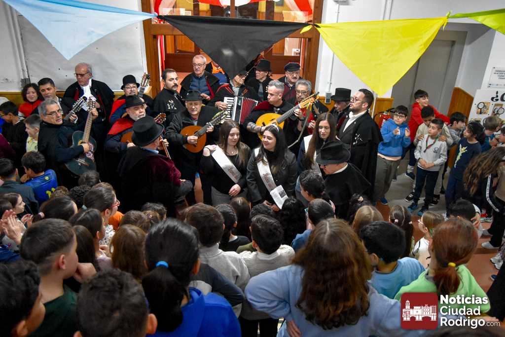 La Rondalla III Columnas realizó durante esta mañana su tradicional visita con motivo del Jueves de Casetas a los centros educativos mirobrigenses. Dicha «gira» la arrancó en el Colegio San Francisco, con una actuación por partida doble, iniciándose en el gimnasio con los cursos más pequeños que, a pesar de su edad, se sabían todas las canciones.
