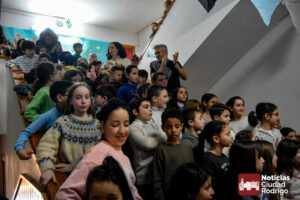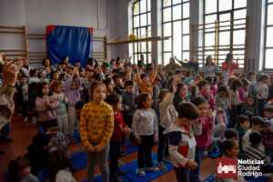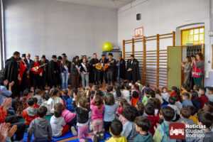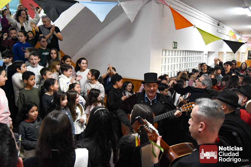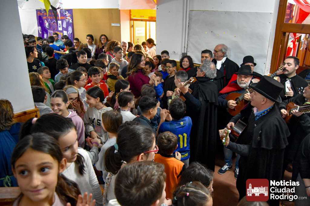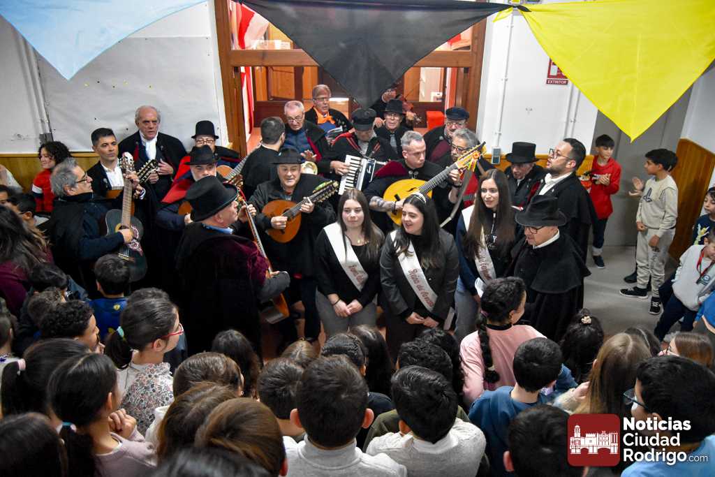 La agrupación musical mirobrigense cantó sus temas más típicos seguidos por el alumnado, que se sabía todas las canciones