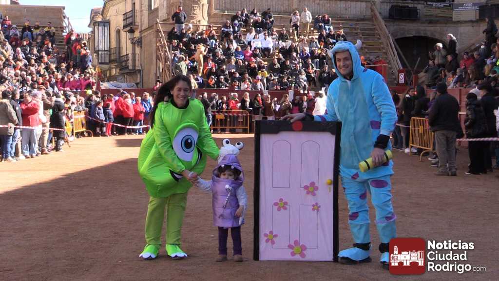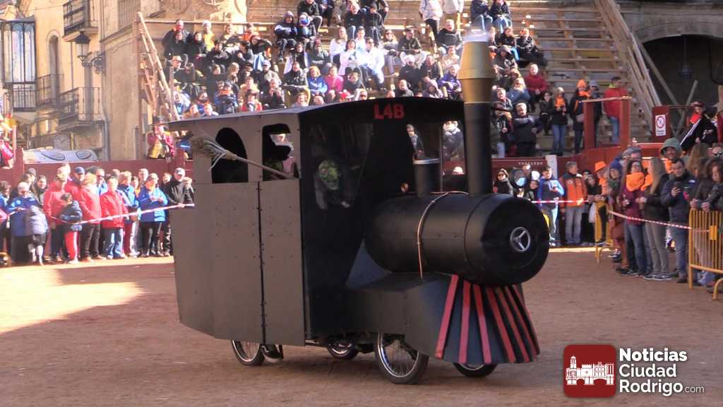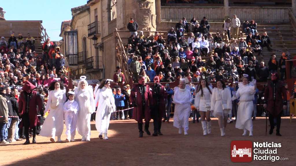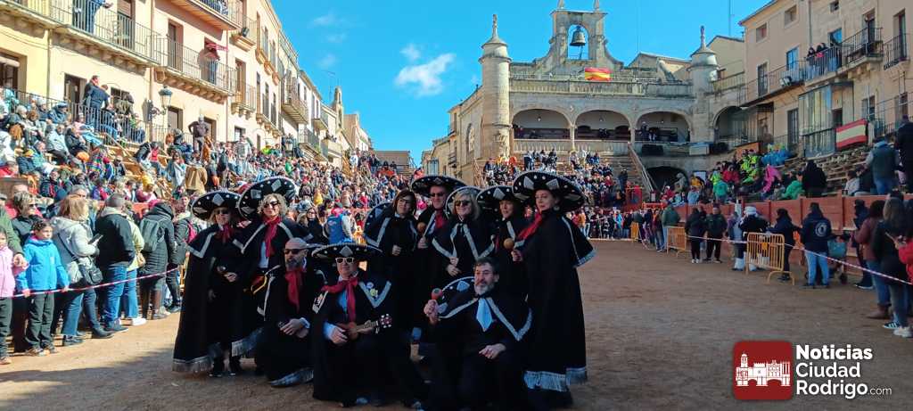Los catorce participantes del concurso convocado por el Ayuntamiento de Ciudad Rodrigo lucieron por la plaza Mayor sus disfraces después del encierro del Sábado de Carnaval