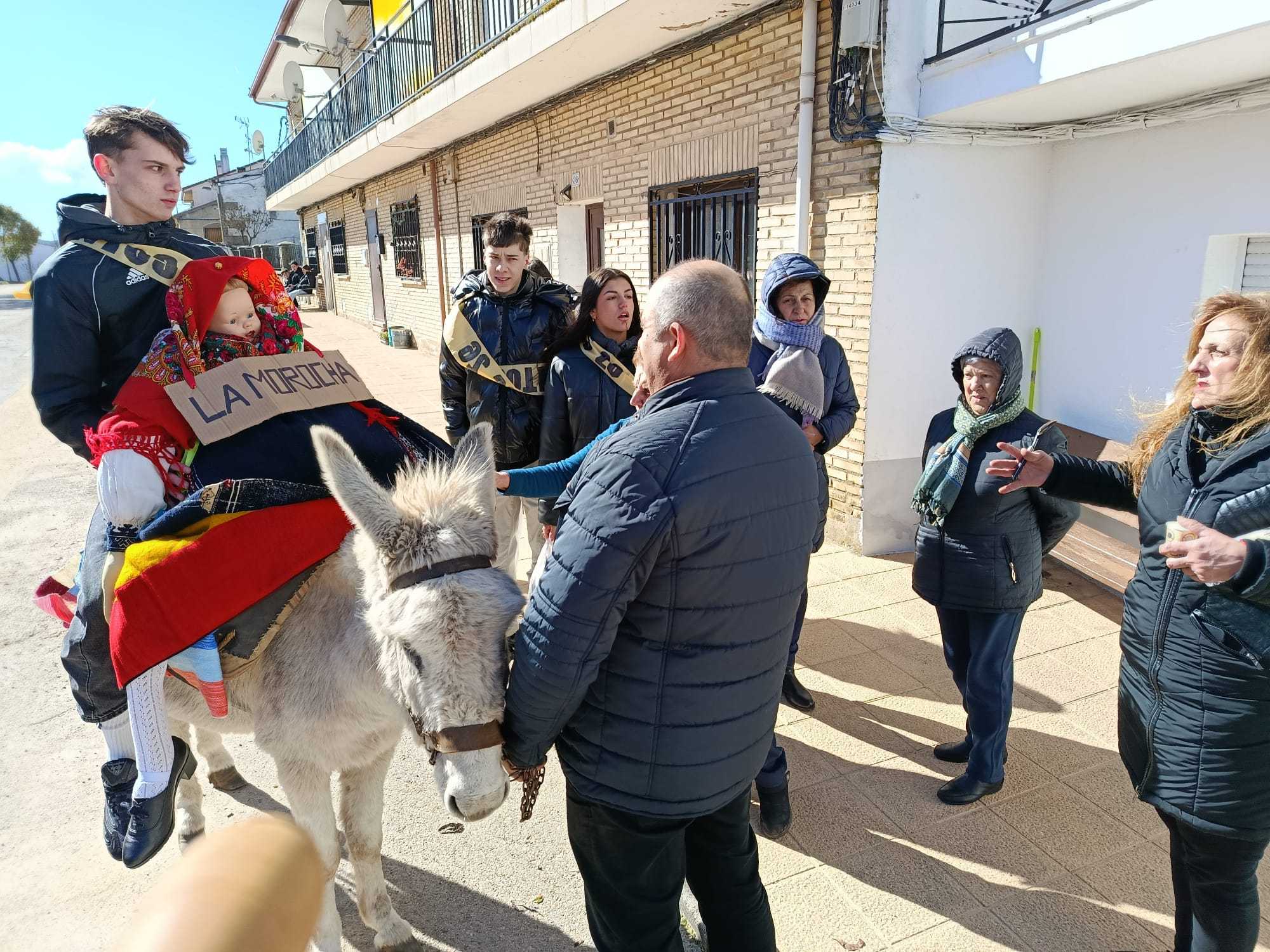 Acompañada por los «Kintos» del 2026, y la gaita y el tamboril de José Benito Mateos (Txebe), «La Charrascona» corrió las calles del pueblo, visitando las casas,donde los «Kintos» eran obsequiados con viandas para la merienda, en una tradición centenaria, que los «payengus» han decidido no dejar perder.