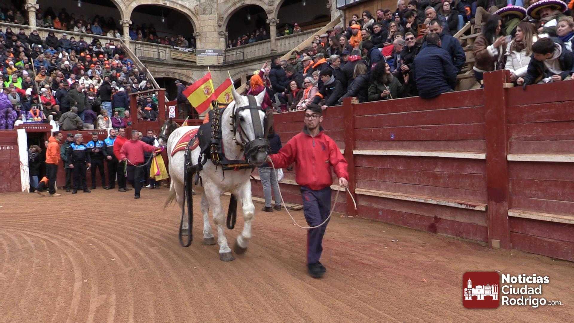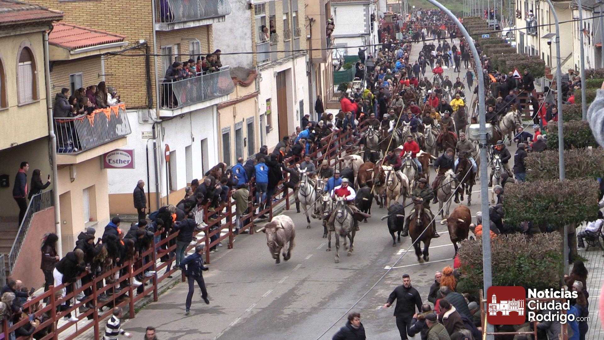 El cómo se desarrolla el encierro a caballo marca en gran medida el ritmo del Carnaval en el ecuador de la fiesta grande de Ciudad Rodrigo. Si el encierro entra, si los toros van hermanados, si los caballistas van acompasados, al unísono, con orden, se sabe quién abre, quién cierra, … todo esto condiciona en gran medida el devenir del Carnaval. Hoy el encierro a caballo ha entrado, ha cumplido cada requisito necesario para que fuera bien y puede decirse que ha sentado las bases para que la jornada de Domingo de Carnaval fuera brillante.