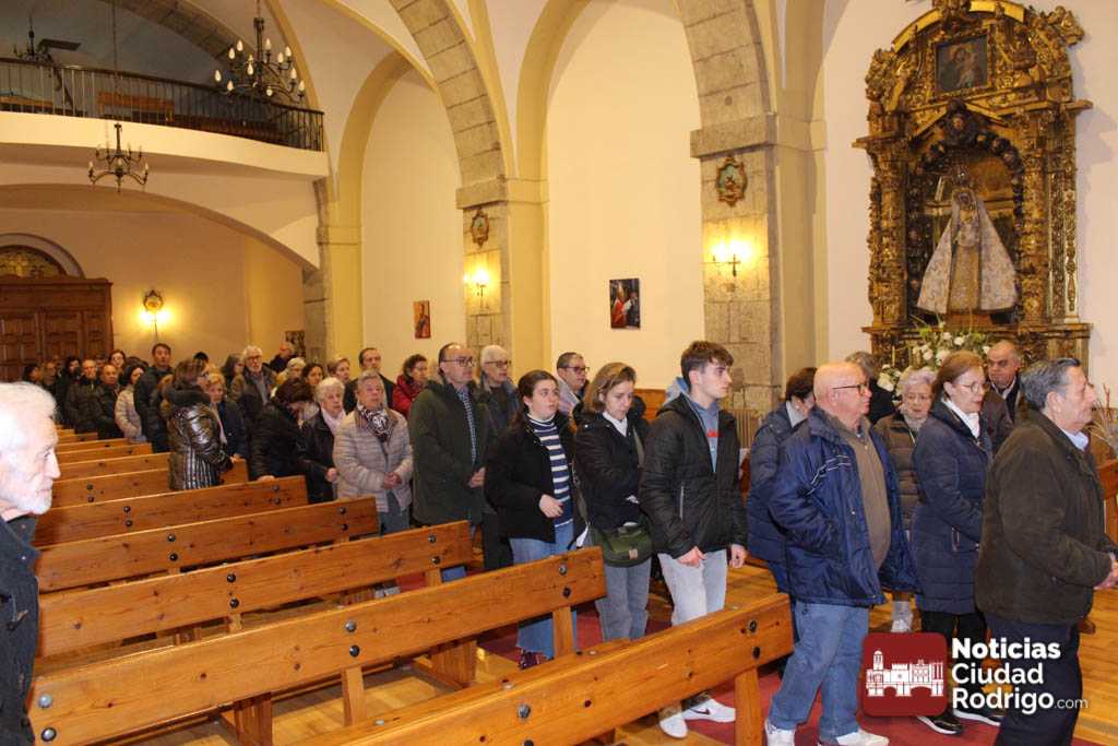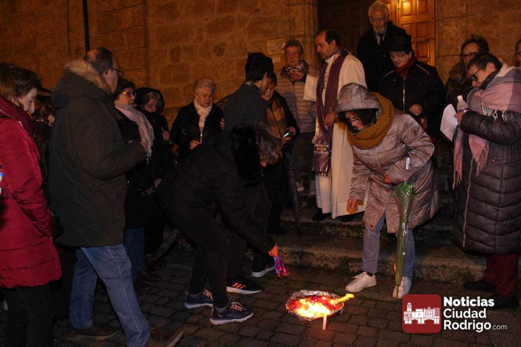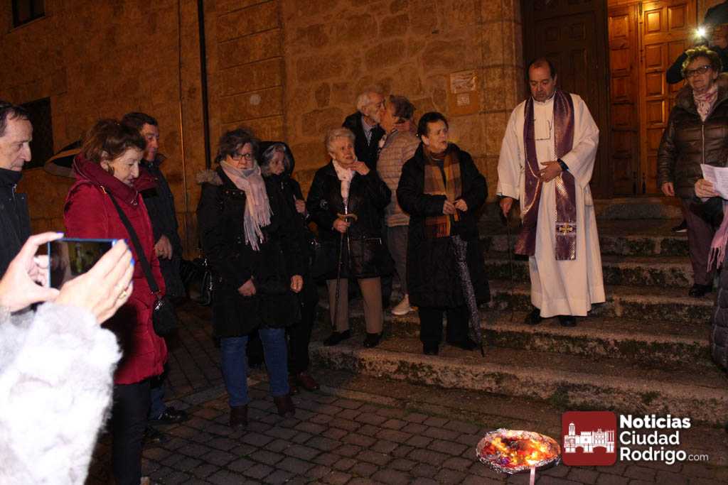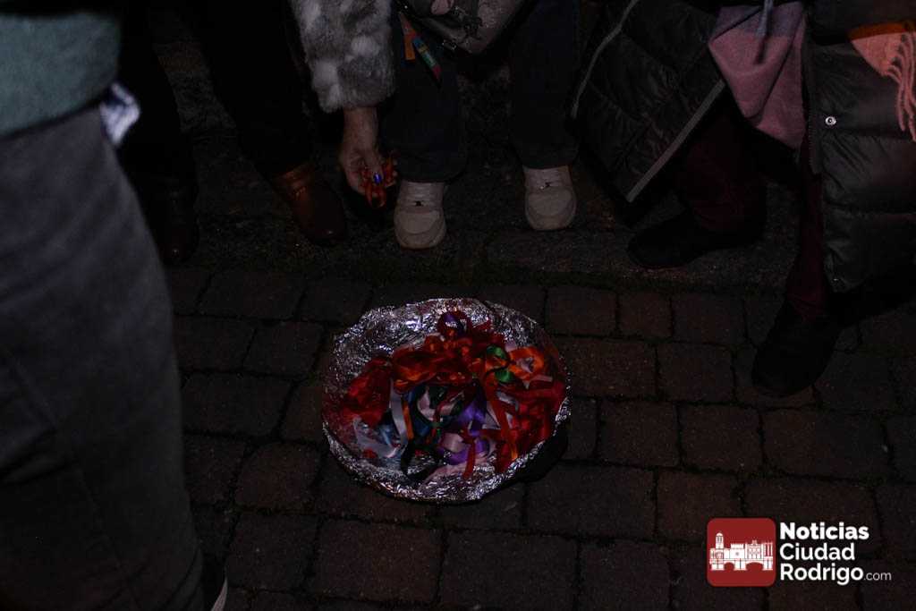 Al finalizar, a la puerta de la iglesia, y como es costumbre desde hace unos años se quemaron las gargantillas de San Blas. Los mirobrigenses acudimos a por esta gargantilla hasta La Caridad, ahora a Sanjuanejo, el día 3 de febrero y desde entonces la llevamos puesta para que San Blas nos proteja la garganta. La tradición indica que hay que quemarla el Miércoles de Ceniza.