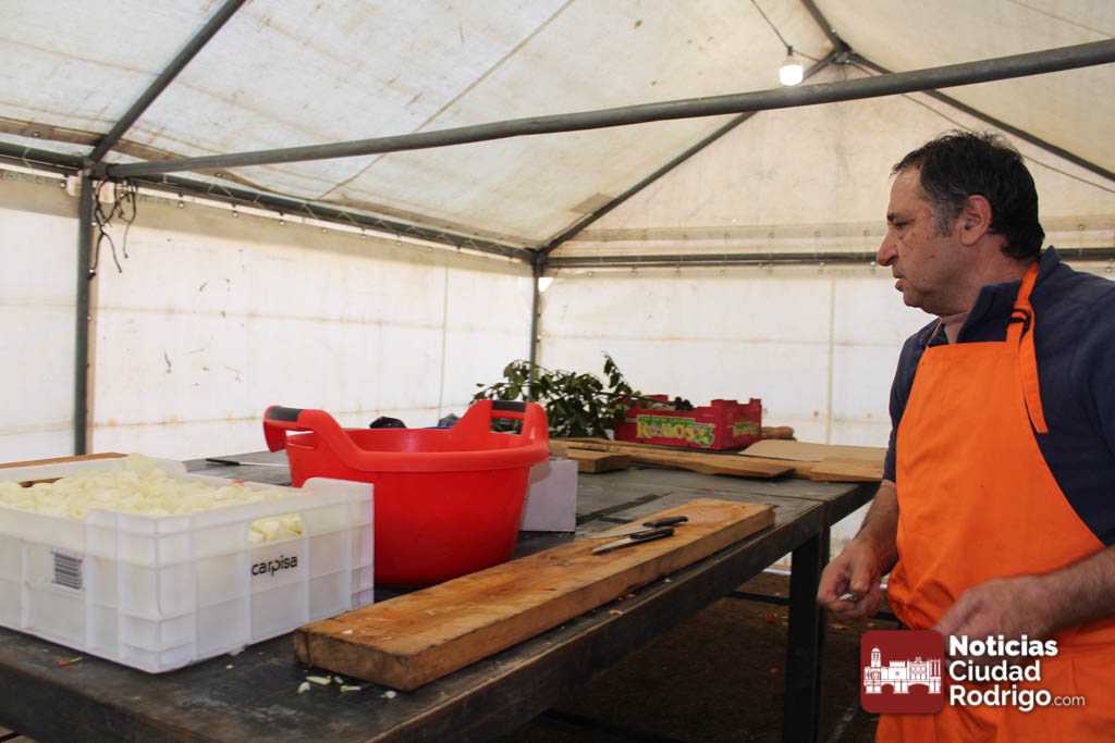 La tarea se está realizando en una carpa instalada en la trasera del pabellón polideportivo municipal del paseo de las Madroñeras, en el patio del colegio San Francisco, lugar donde mañana se realizará el guiso y posterior reparto de raciones.