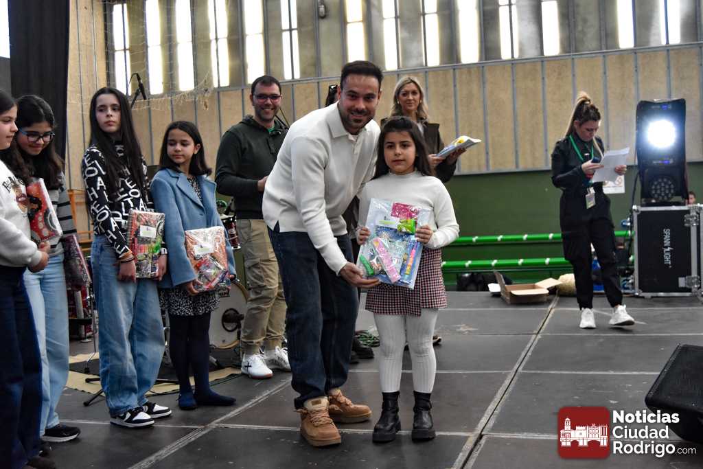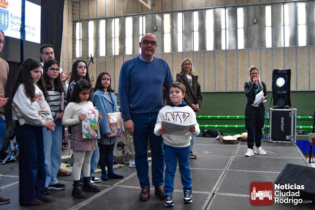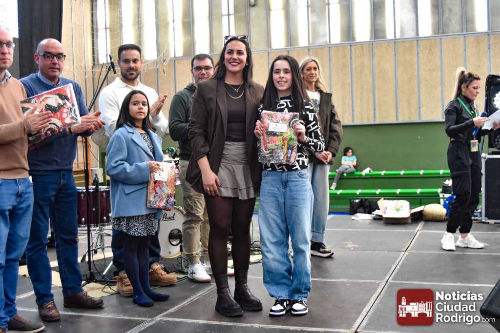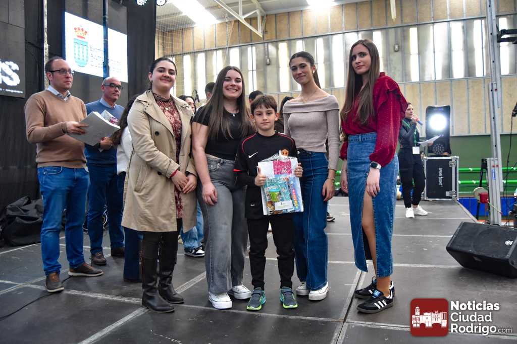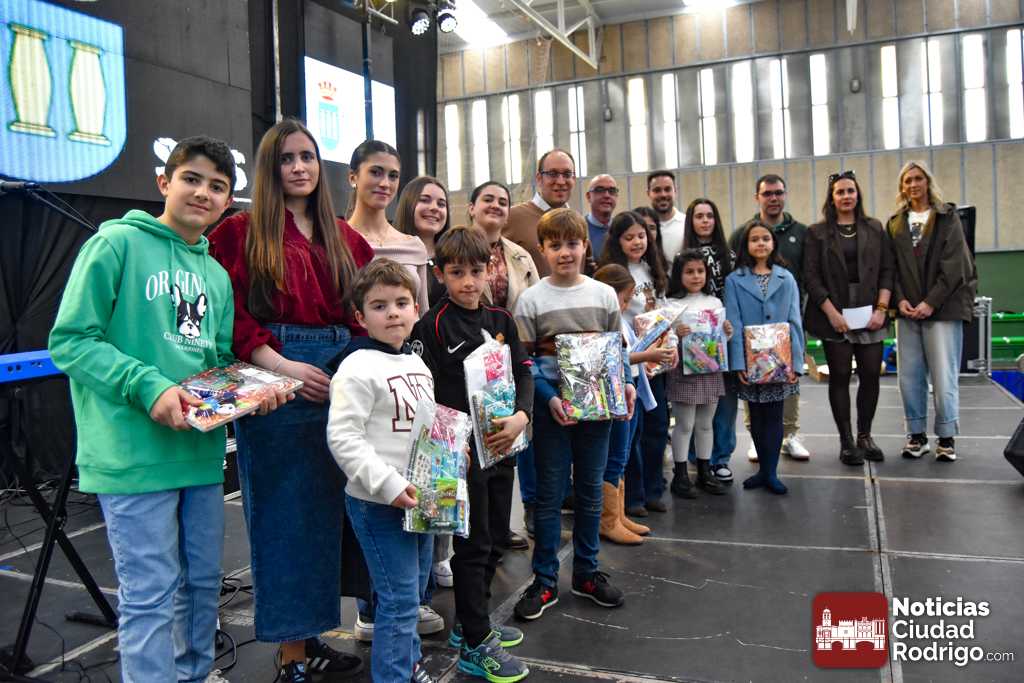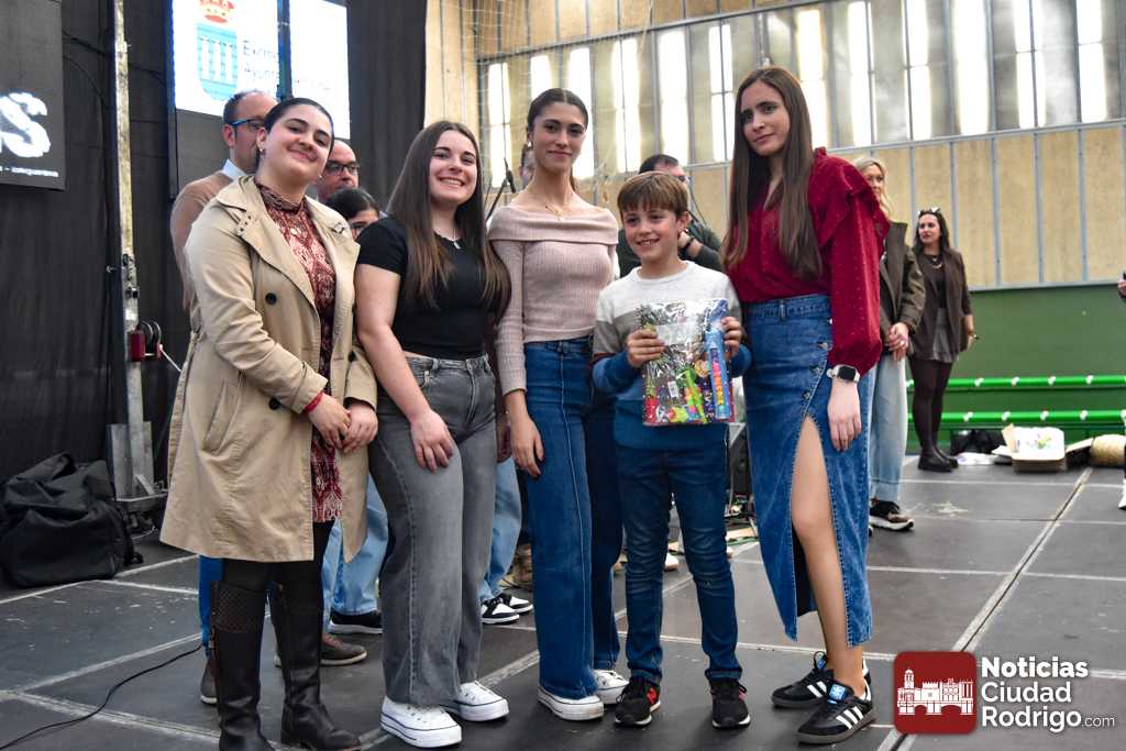 El Ayuntamiento de Ciudad Rodrigo, acompañados por la Reina y Damas, dieron durante la tarde del Domingo de Piñata en el Pabellón Municipal de Deportes los premios correspondientes a los concursos de Dibujo Infantil, Disfraz Callejero y Carrozas, correspondientes al Carnaval del Toro 2026.