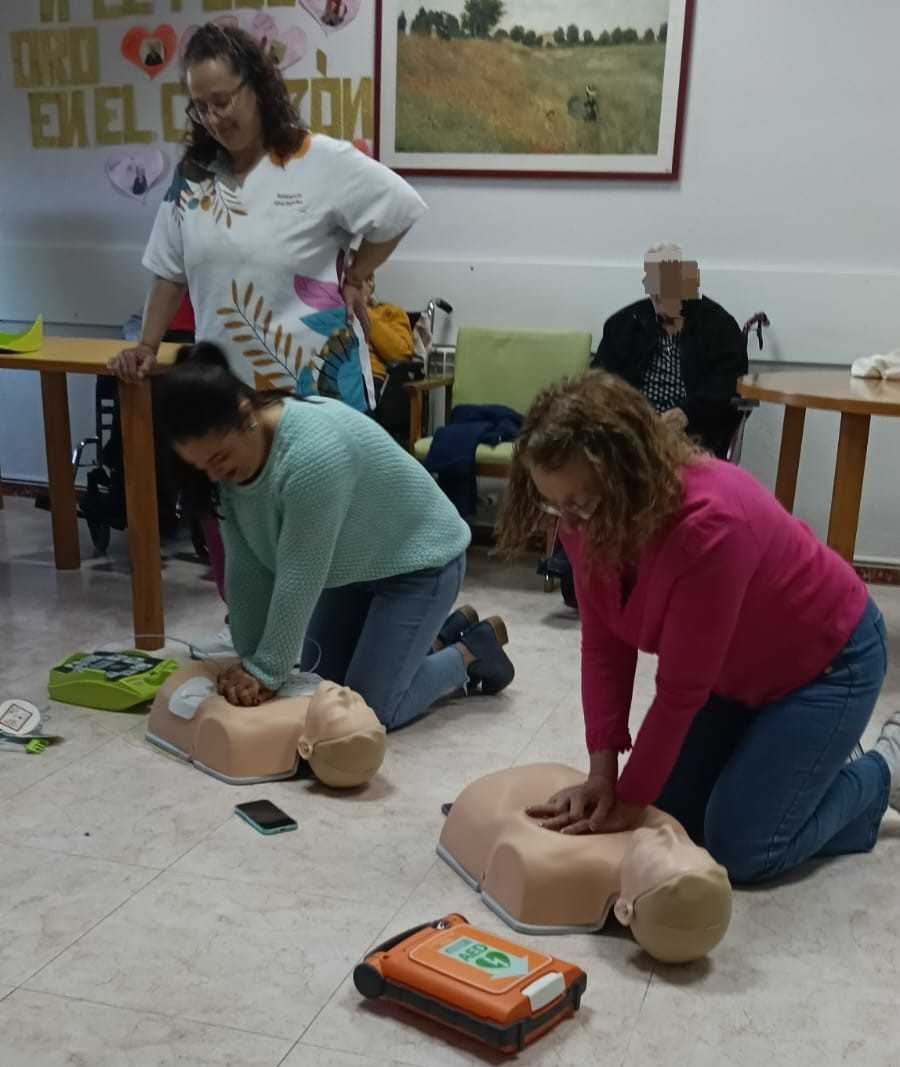 Durante la sesión, los profesionales sanitarios ofrecieron formación teórica y práctica sobre la importancia de una intervención rápida, el correcto uso del DEA y la aplicación adecuada de las maniobras de reanimación, destacando el valor de la prevención y la preparación en el ámbito sociosanitario.