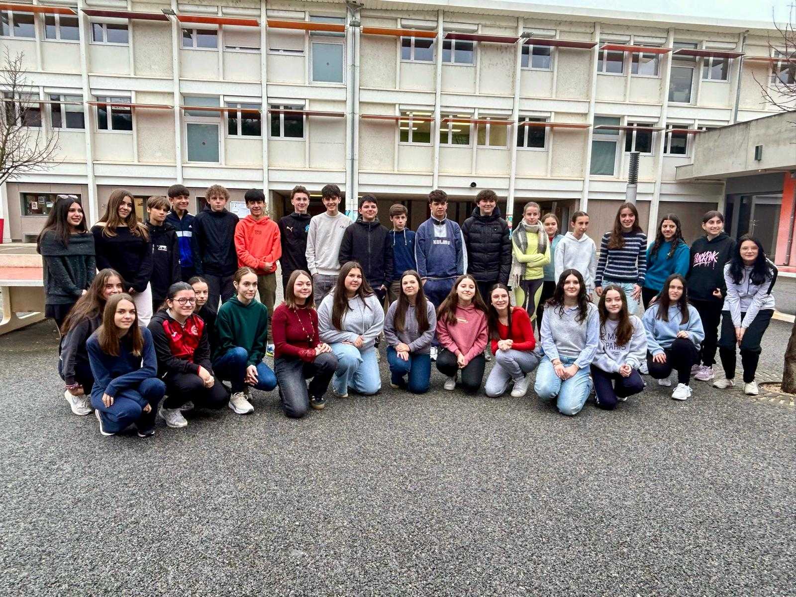 Ya en destino, en el Collège Armand Coussens, en Saint-Ambroix, esperaban las familias de 16 alumnos franceses dispuestas a acoger a los españoles durante una semana, donde tuvieron la oportunidad de descubrir el sistema escolar francés. Asistieron a distintas clases, comieron en la cantina del instituto a las 12h.