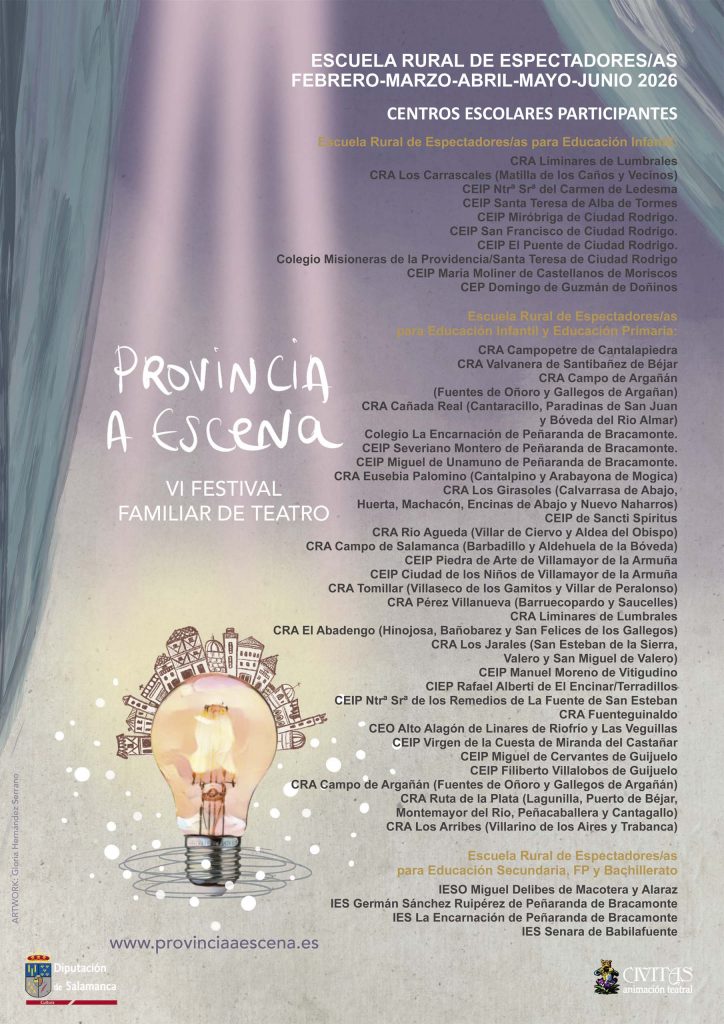 La Diputación de Salamanca ha presentado la sexta edición del Festival de Artes Escénicas Infantil y Familiar “Provincia a Escena”, un proyecto que este año llegará a 44 centros educativos agrupados que coordinan 83 colegios de 20 localidades, entre los que están los centros de Ciudad Rodrigo y Fuentes de Oñoro, y que durará hasta el 11 de junio.