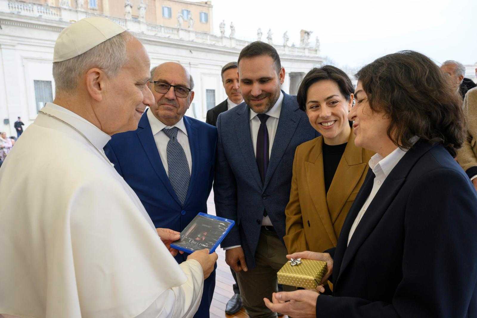 El director Pablo Moreno, acompañado de una delegación de la película, entregó al Papa León XIV la primera copia del largometraje