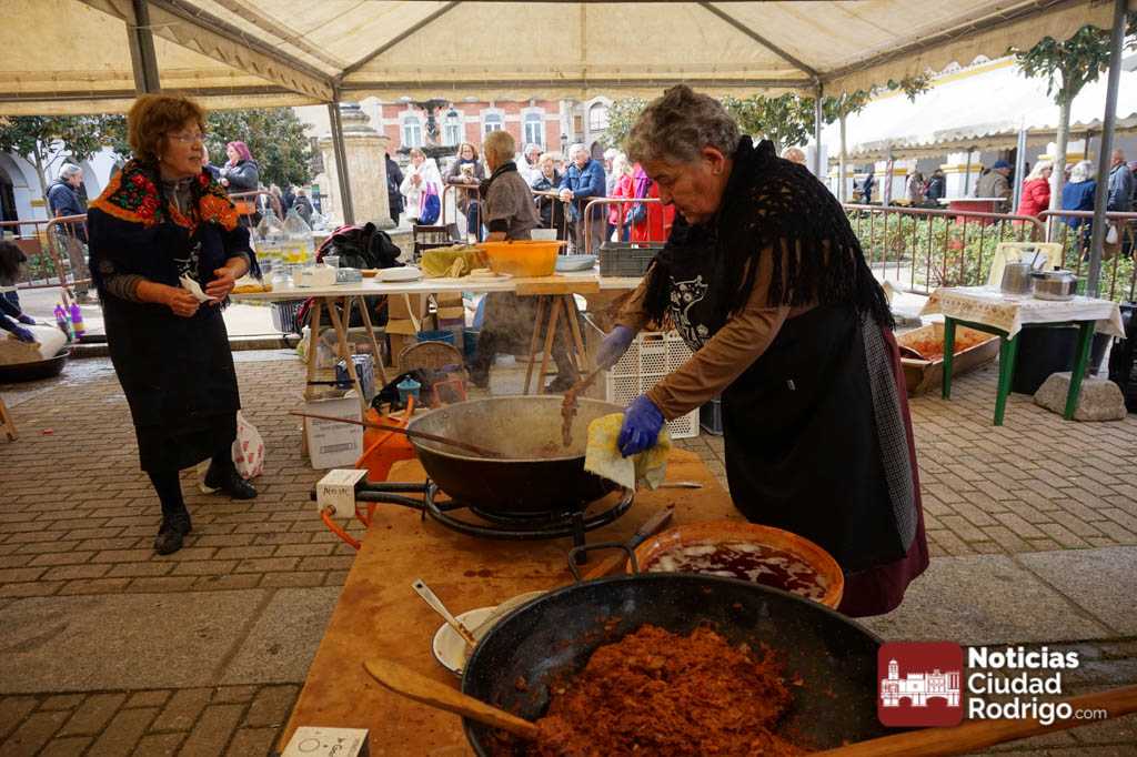 En total, se cocinaron 60 kilos de carne, más la del cerdo que se había matado, 30 kilos de hígado, 40 kilos de panceta, 12 kilos de ajos, 50 cebollas, 8 panes y 20 kilos de manteca.
