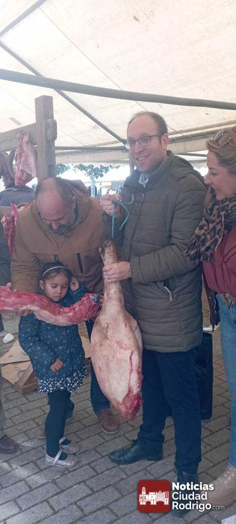 Además, se sortearon dos lotes de lomo y jamón, al final de la mañana. Uno de los premios, el del número 00938, apareció en el momento fue para Juan de Salamanca, aunque residente en Ciudad Rodrigo. Otro de los números premiados fue el 1223 que no ha aparecido de momento.