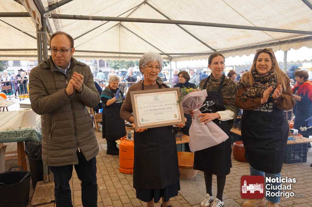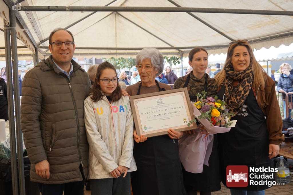 El alcalde Marcos Iglesias, acompañado por la concejal delegada Ana María Castaño entregaron el reconocimiento de matancera de honor a Milagros Pulido, que estuvo acompañada por su familia al recibir este galardón.