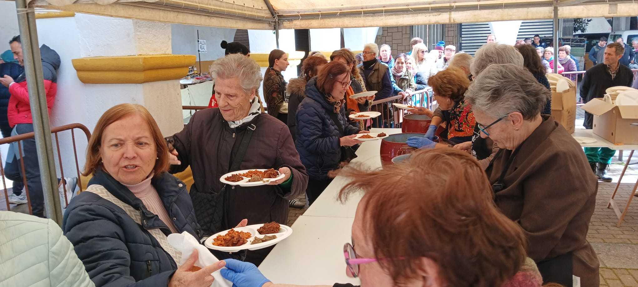 Tras el despiece, tuvo lugar el momento de picar la carne y la elaboración de embutido. Mientras, se iba preparando el almuerzo matancero para más de un millar de personas. Coordinadas por Rosario Pérez «Olaya», mujeres de la asociación «Amanecer» colaboraron con la actividad.