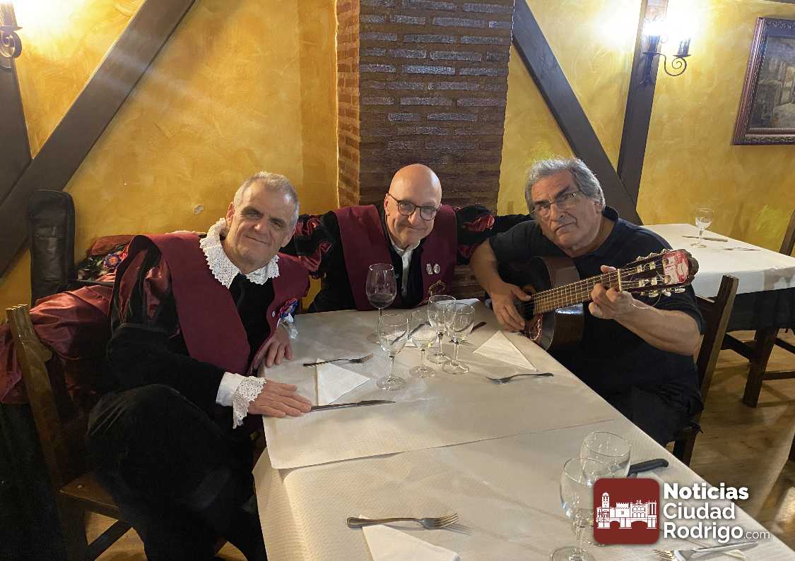 La Rondalla III Columnas y la Tuna de Biología de Sevilla iniciaron su encuentro en Ciudad Rodrigo con una cena de hermandad en la Sidrería. Un encuentro donde no faltó la música por parte de ambas agrupaciones.