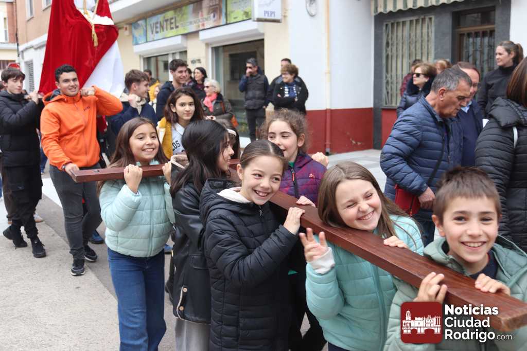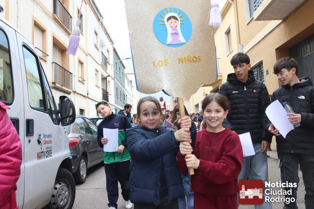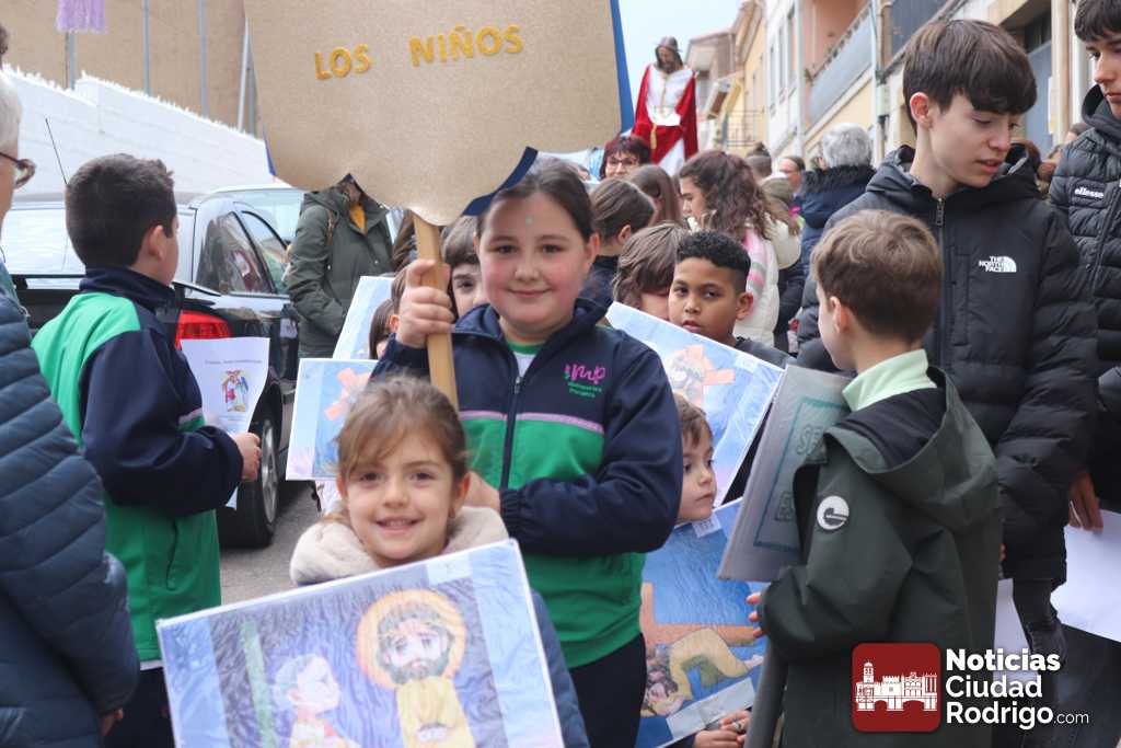 El Via Crucis de los niños, organizado por la delegación de Misiones de la diócesis de Ciudad Rodrigo, ha tenido lugar esta tarde desde el colegio Misioneras de la Providencia a la iglesia parroquial de El Salvador, pasando por calles del barrio San Pelayo y Las Canteras.
