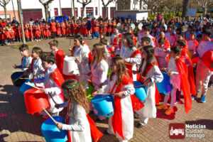 Los diferentes cursos realizaron, a su vez, una batucada con la que se quitaron la «espina» de no poder salir en carnavales