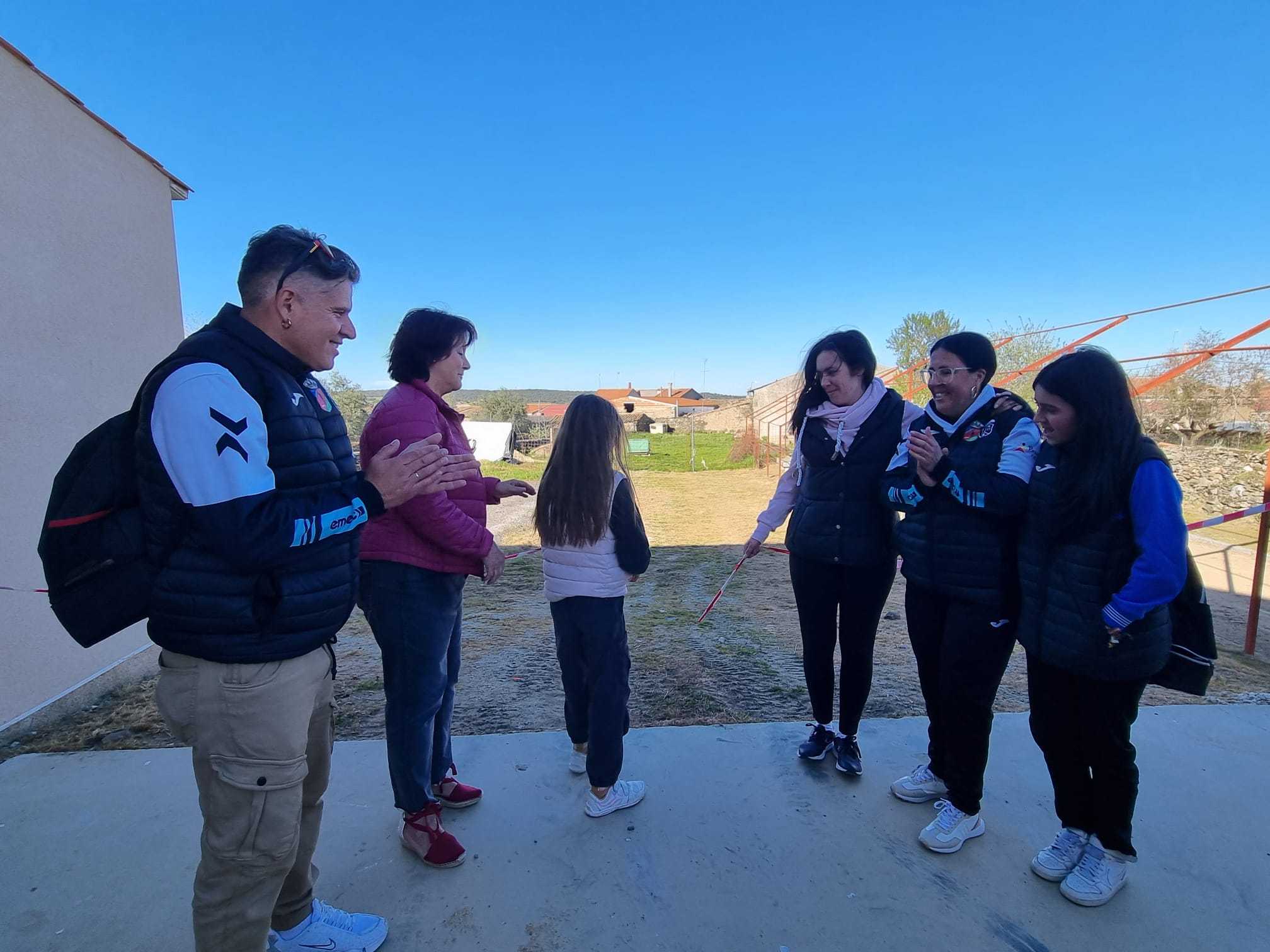 Potrosos y personas de pueblos cercanos como Castillejo Martín Viejo, La Bouza y Val de la Mula lanzaron sus primeras bolas bajo la atenta mirada y las explicaciones de los campeones de Castilla y León Lorena Sánchez, Fran Sastre y Thais Sánchez.