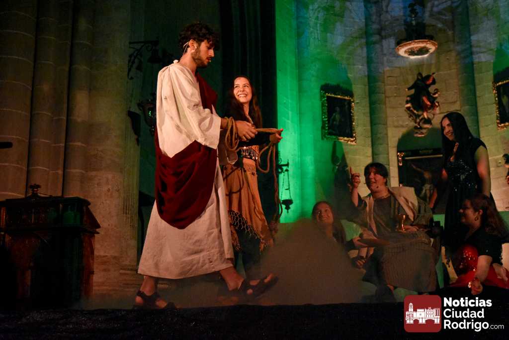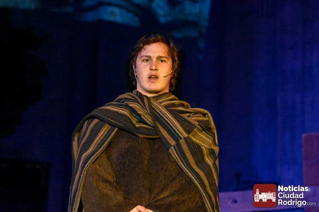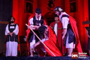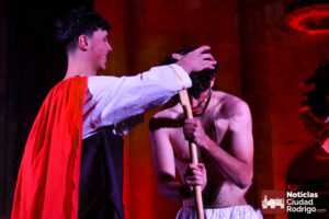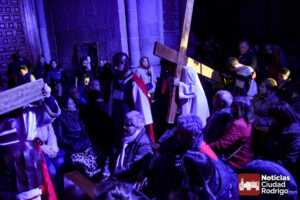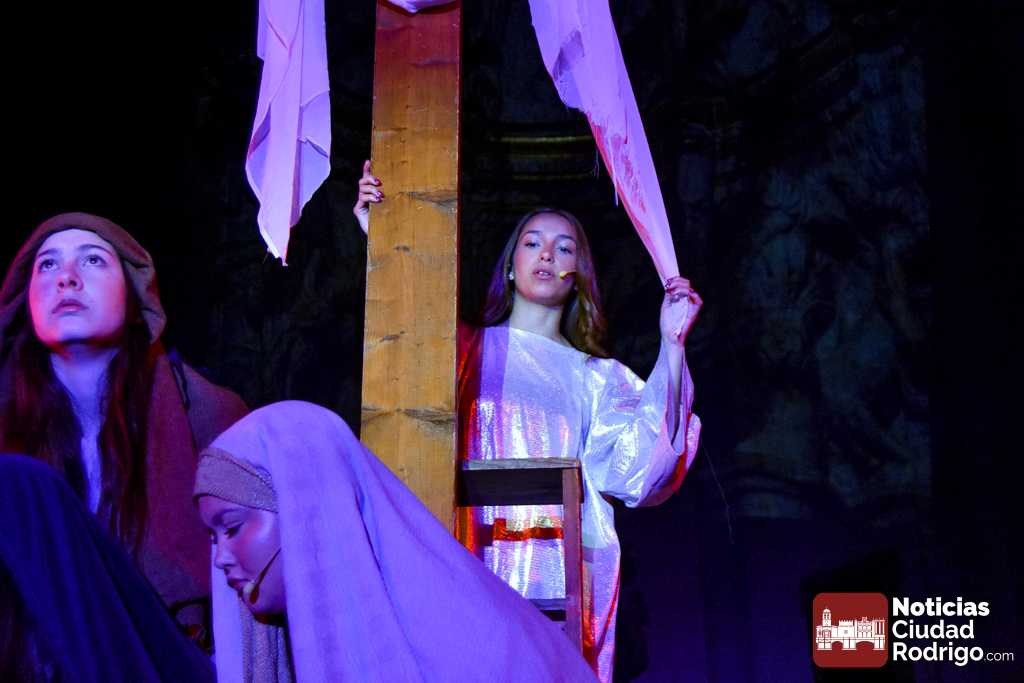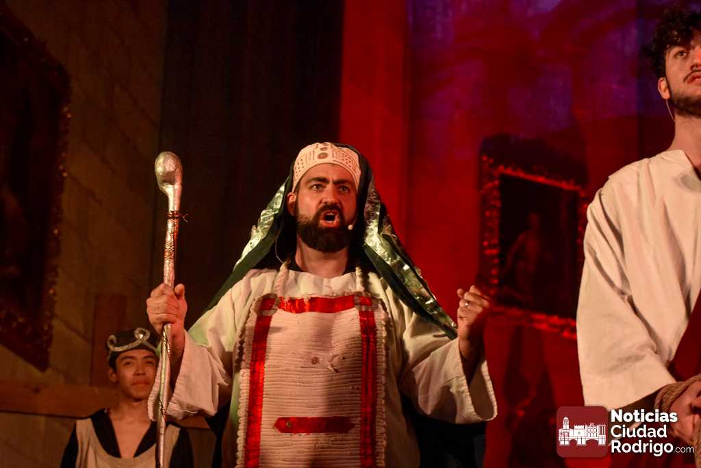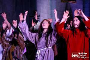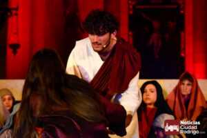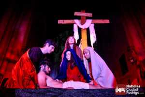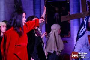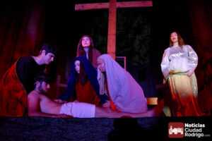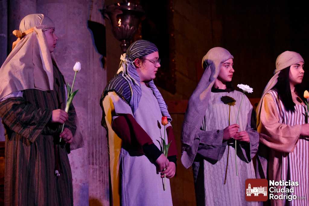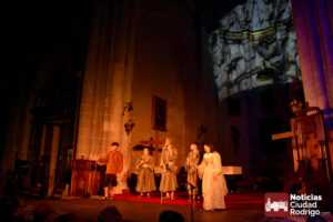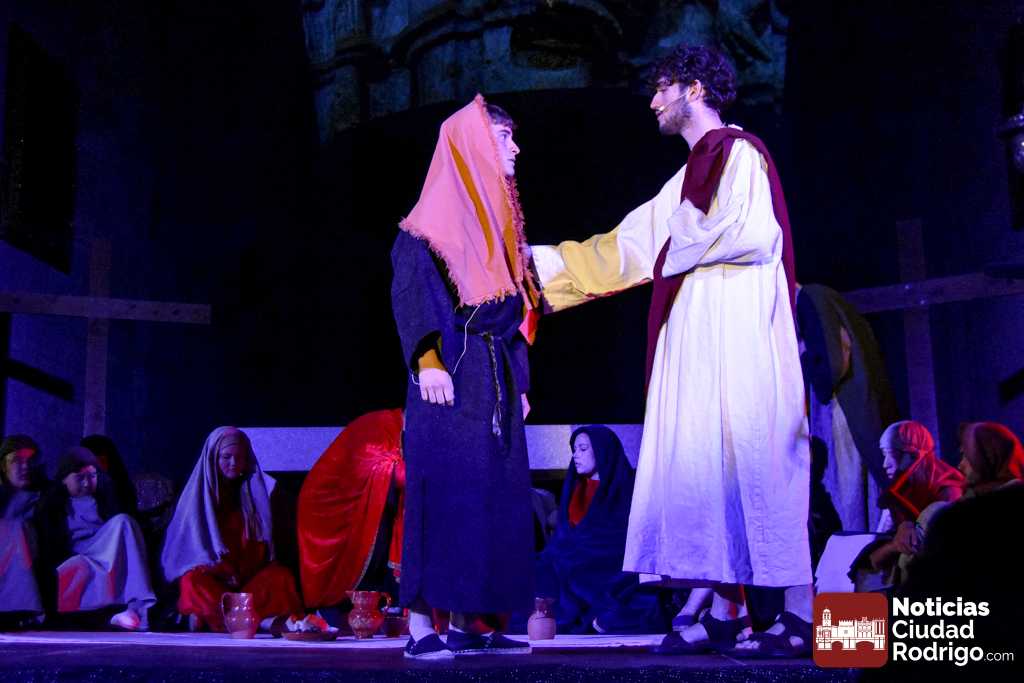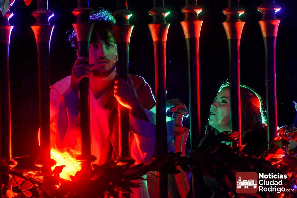La Catedral de Ciudad Rodrigo acogió durante la noche de Lunes Santo uno de los «clásicos» de la Semana Santa mirobrigense como es la representación de La Pasión a cargo del Grupo El Manantial. Una cita que llenó el templo mirobrigense hasta los topes y que contó con una puesta en escena sobrecogedora (en el buen sentido de la palabra) y bien combinada con un trabajo a nivel de iluminación y sonido, que aprovecharon la oportunidad que ofrecía la propia Catedral como espacio escénico, lugar que no contaba con esta actuación desde hace justo una década.
