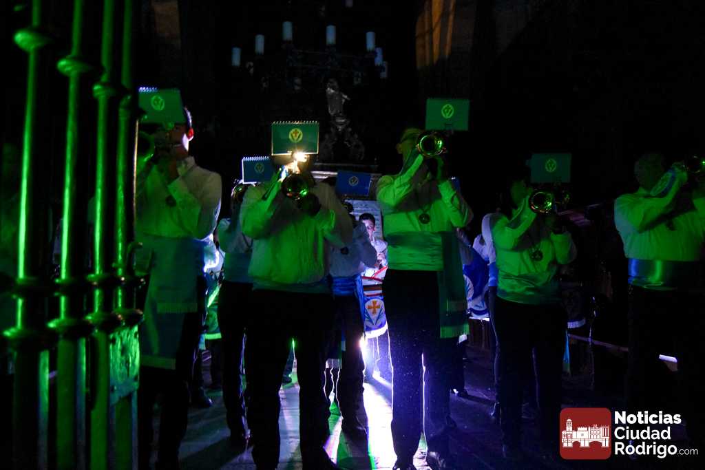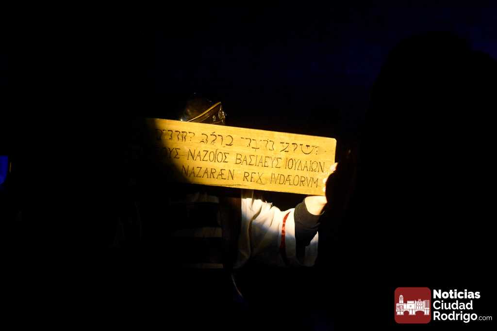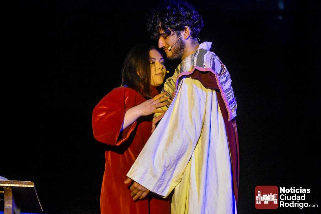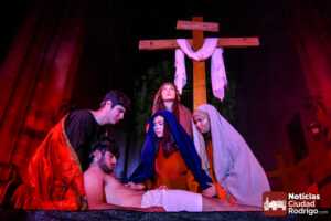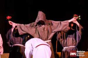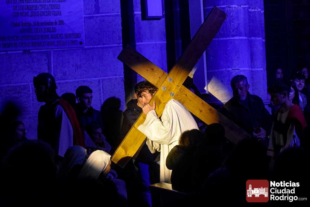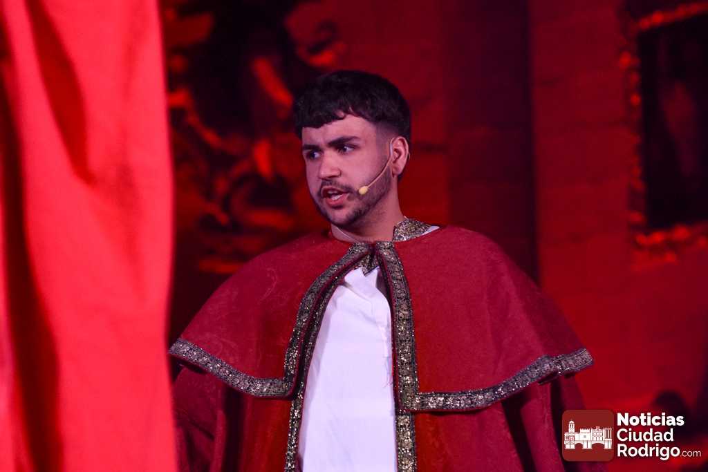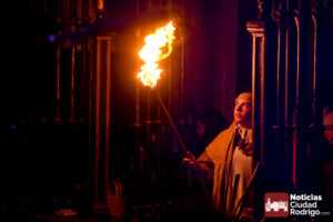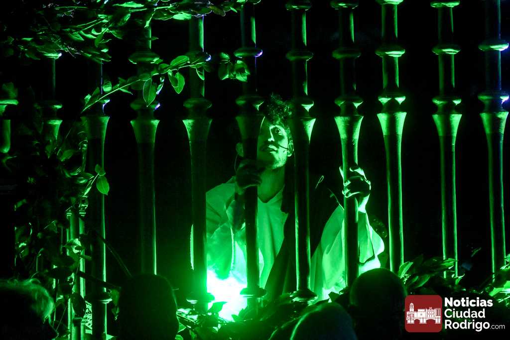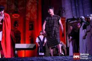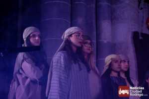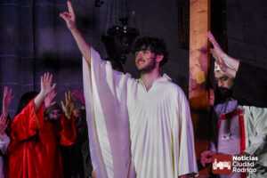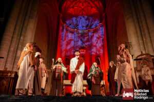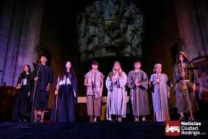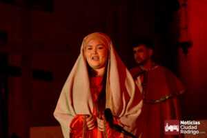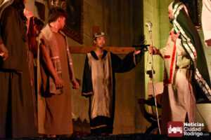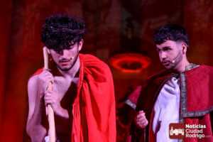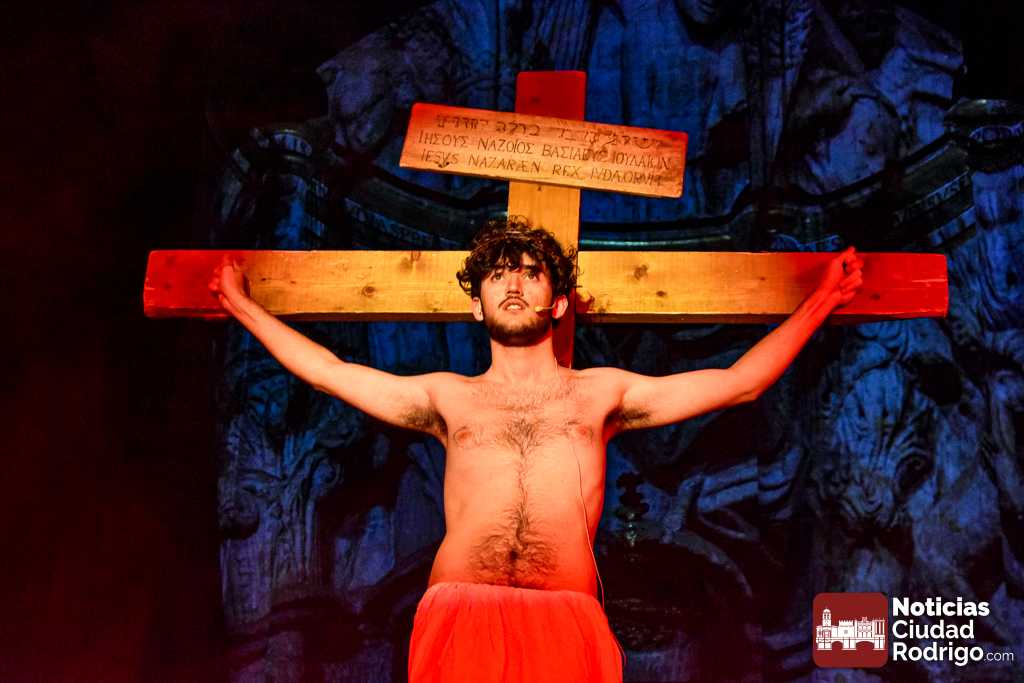 La Catedral de Ciudad Rodrigo acogió durante la noche de Lunes Santo uno de los «clásicos» de la Semana Santa mirobrigense como es la representación de La Pasión a cargo del Grupo El Manantial. Una cita que llenó el templo mirobrigense hasta los topes y que contó con una puesta en escena sobrecogedora (en el buen sentido de la palabra) y bien combinada con un trabajo a nivel de iluminación y sonido, que aprovecharon la oportunidad que ofrecía la propia Catedral como espacio escénico, lugar que no contaba con esta actuación desde hace justo una década.