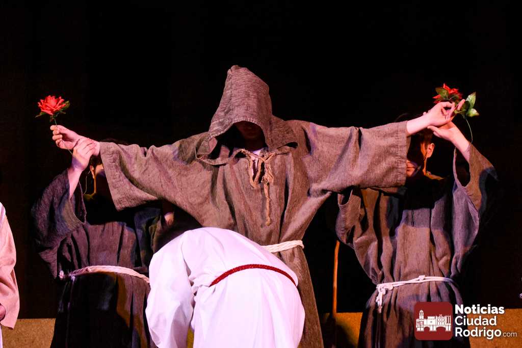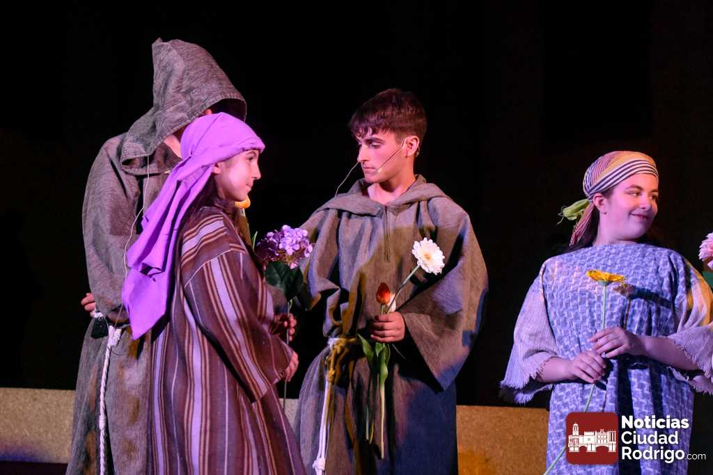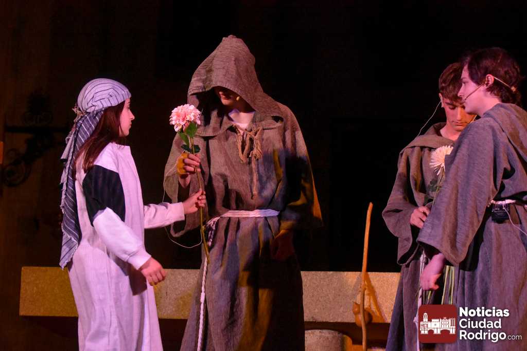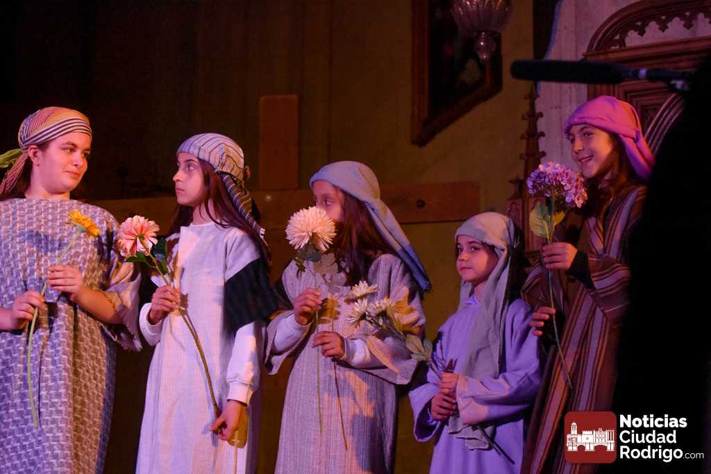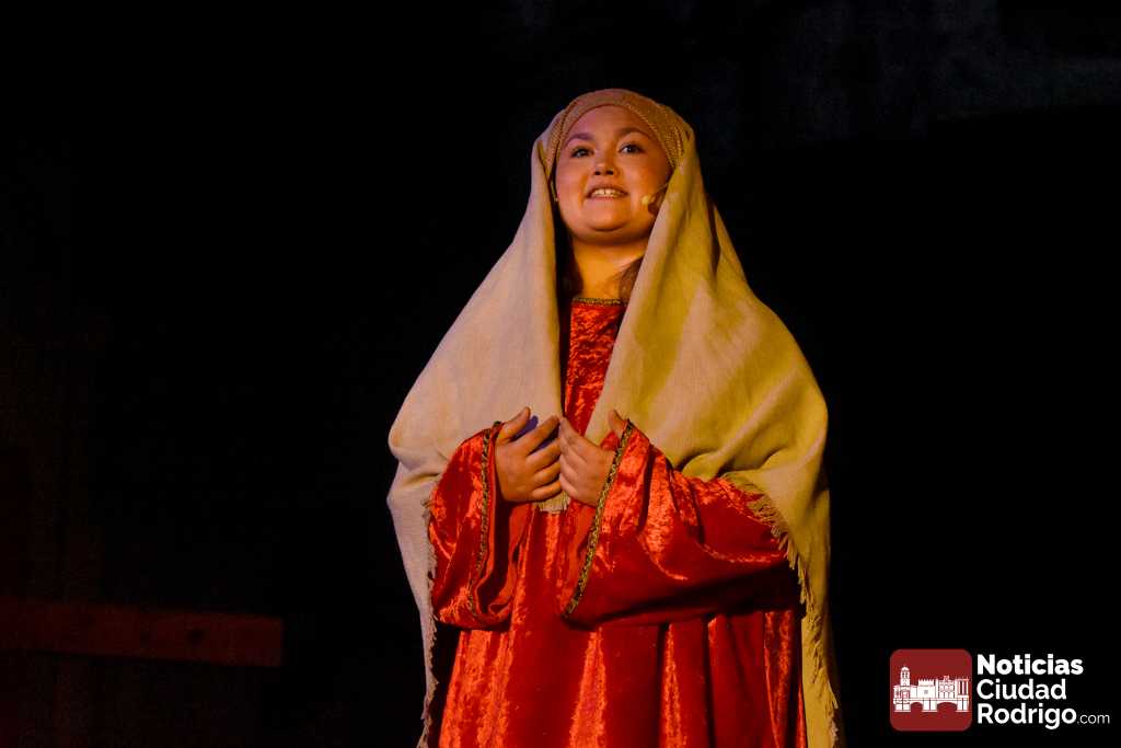 La obra, como en cada año, tuvo sus peculiaridades propias, siendo las más visibles una entrada referencial a San Francisco de Asís y su paso por Ciudad Rodrigo, así como la actuación de la Banda de la Cofradía Jesús Amigo de los Niños. También se pudo ver en el fondo una muestra de proyecciones con referencias que cuenta la propia Catedral.