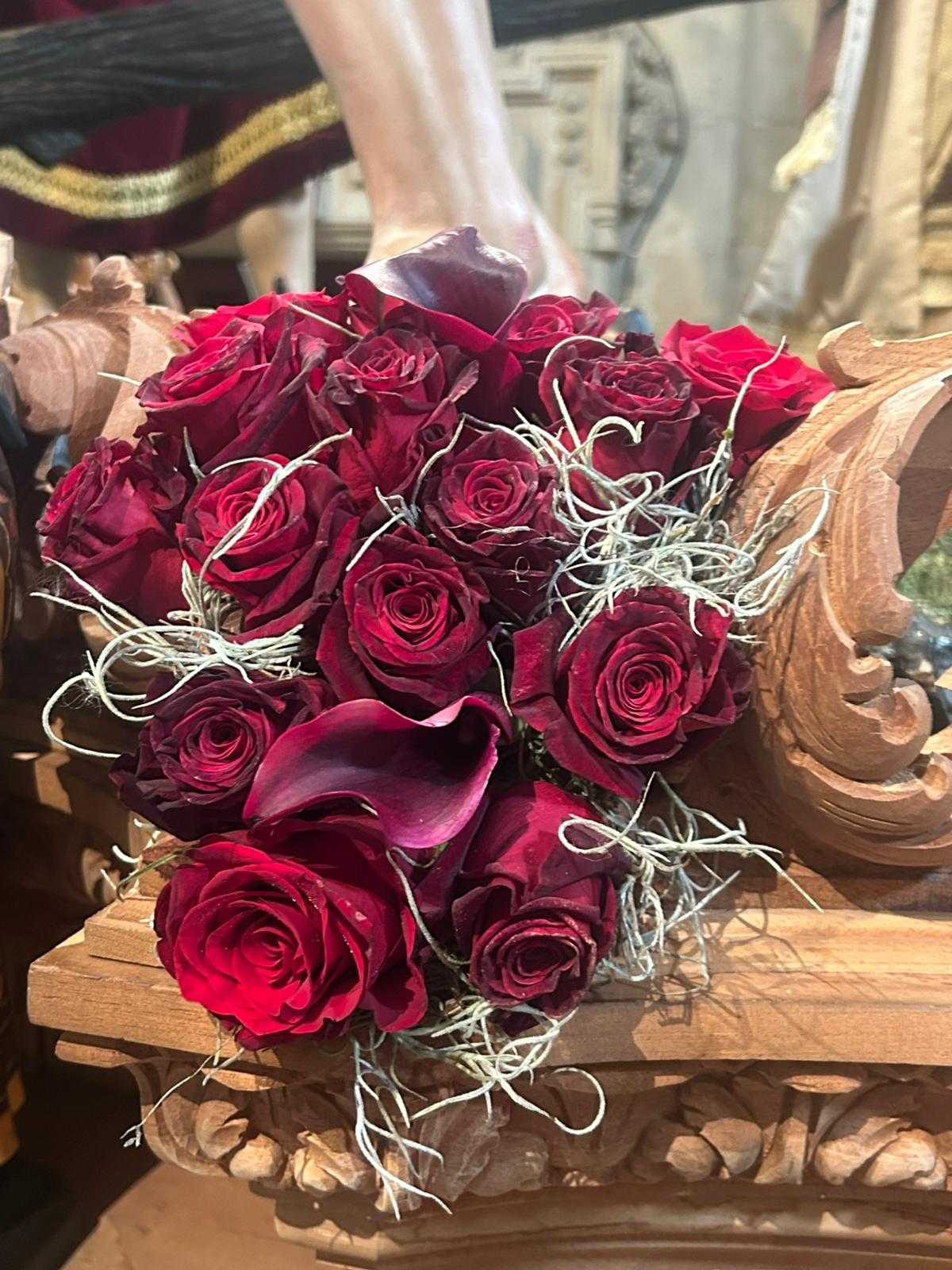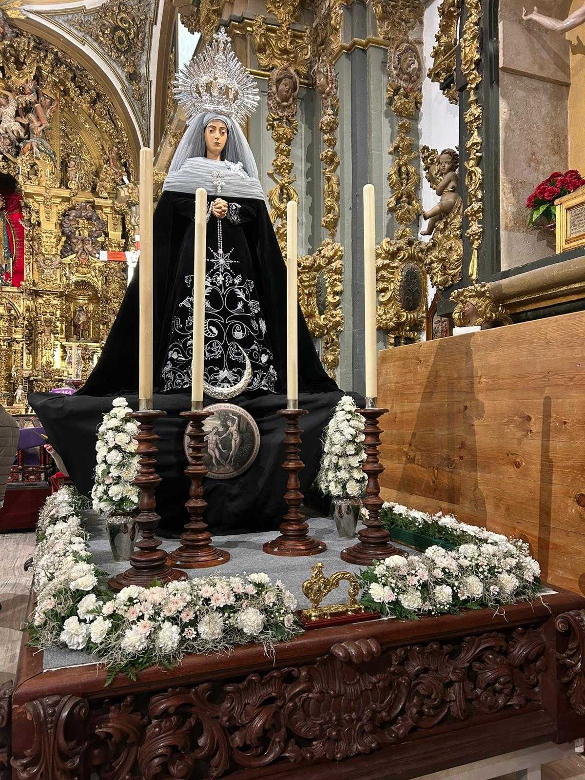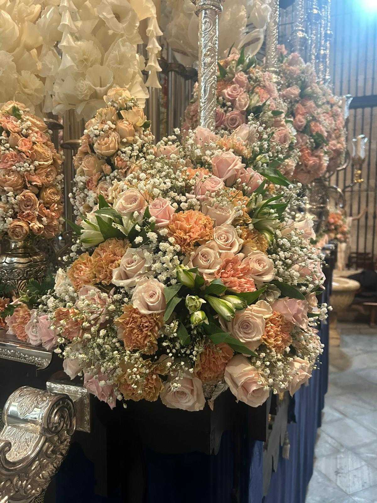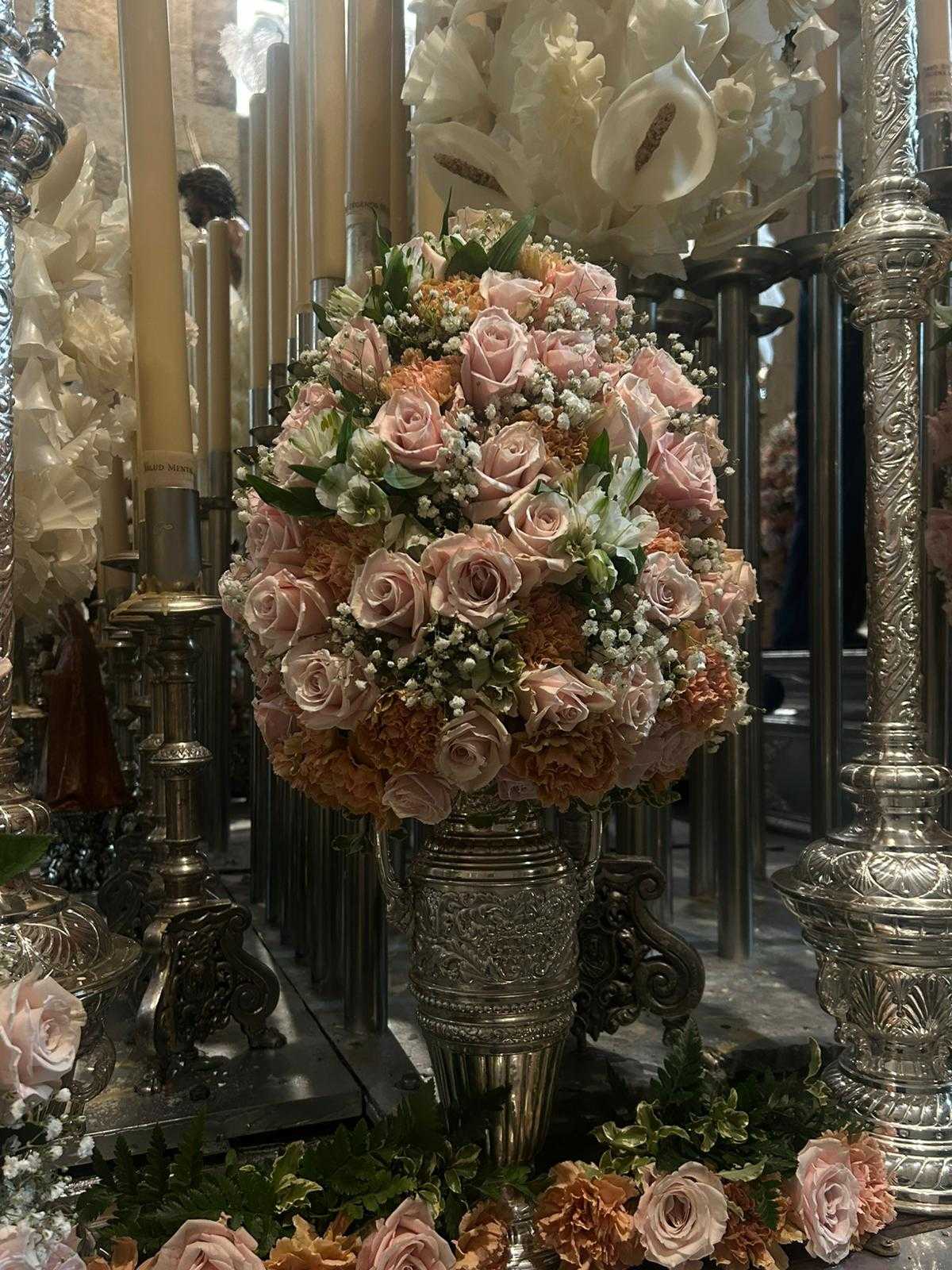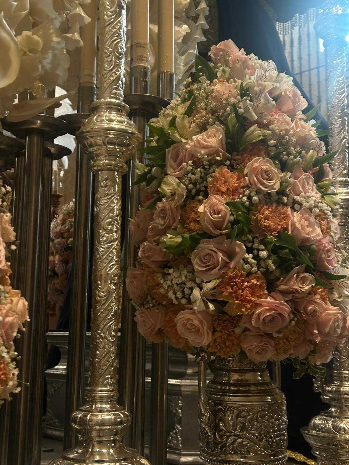 Esta Semana Santa, lucen flores, procedentes de esta floristería, pasos como el palio de Nuestra Señora de la Esperanza o de la Virgen de la Soledad, así como El Despojado o La Veracruz.