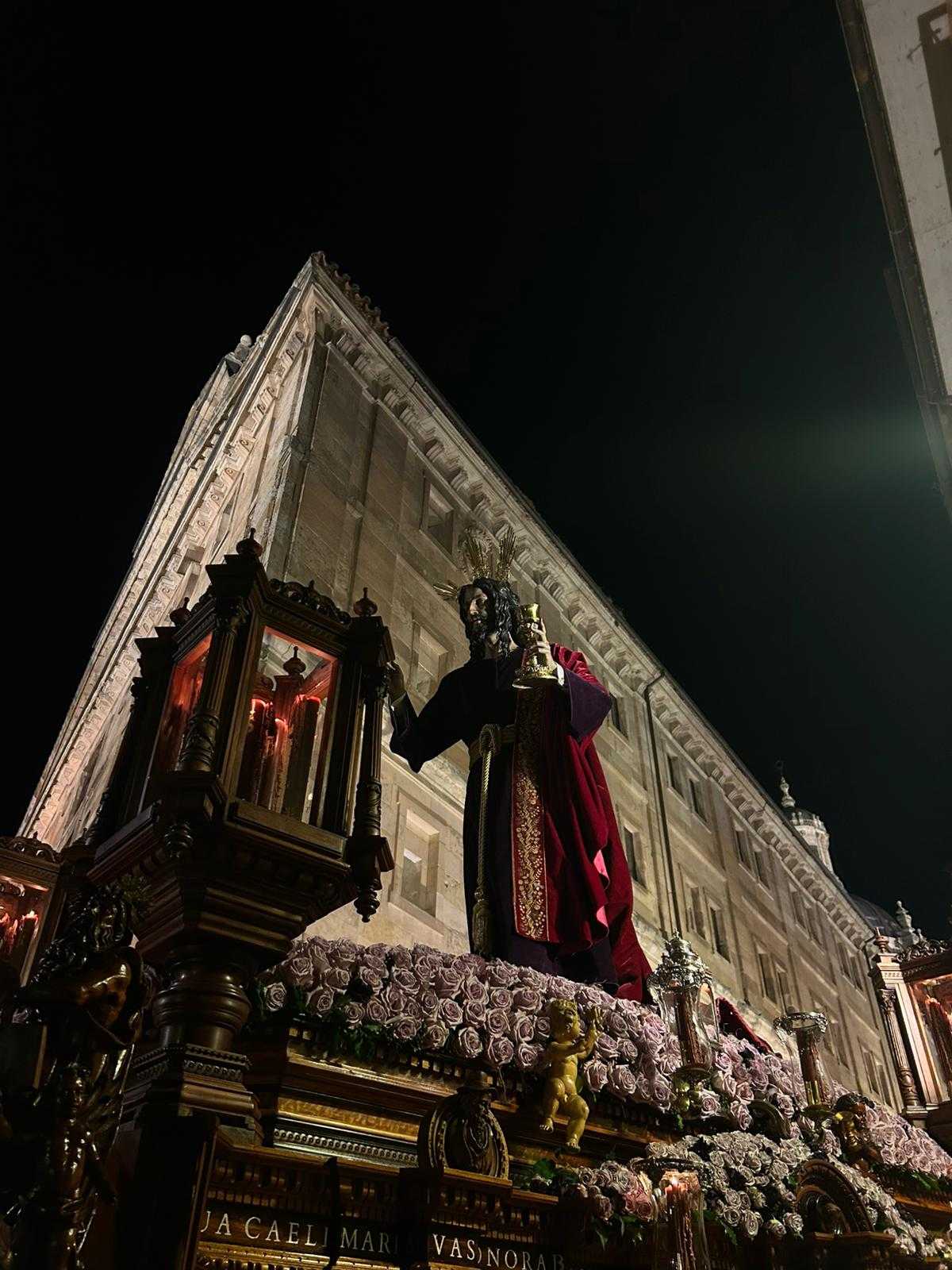 Algunos adornos florales son incorporados al paso por la propia cofradía que encarga estos adornos florales a la floristería de La Fuente de San Esteban y otros son realizados con esmero por la propia floristería.