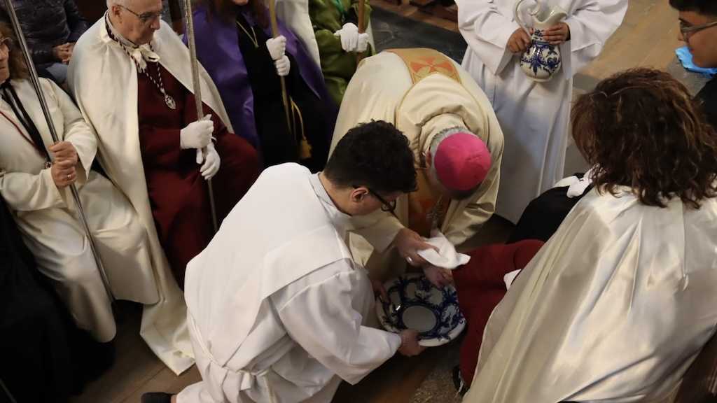 A esta Eucaristía, asisten representantes de todas las Cofradías de Semana Santa. Este año, el obispo Mons. José Luis Retana fue el encargado de realizar este acto simbólico que recuerda el episodio en el que Jesús lavó los pies a sus discípulos.