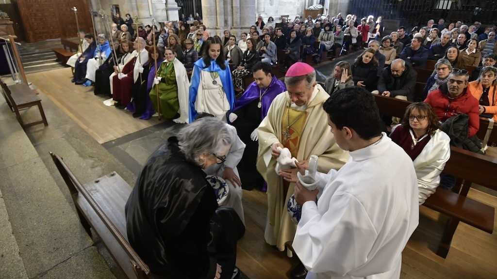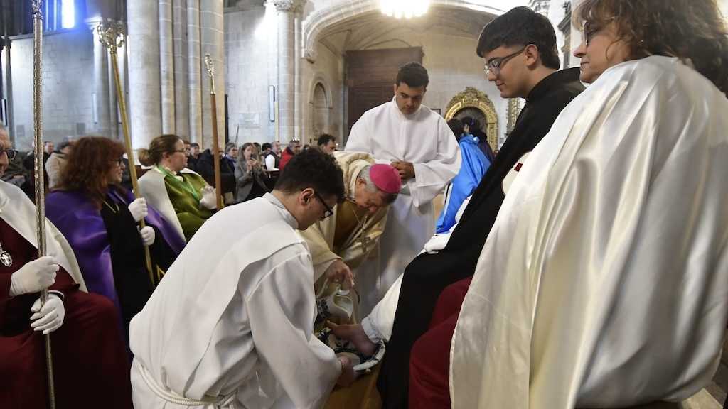 El obispo de Ciudad Rodrigo «lava los pies» a representantes de las Cofradías en la misa de Jueves Santo