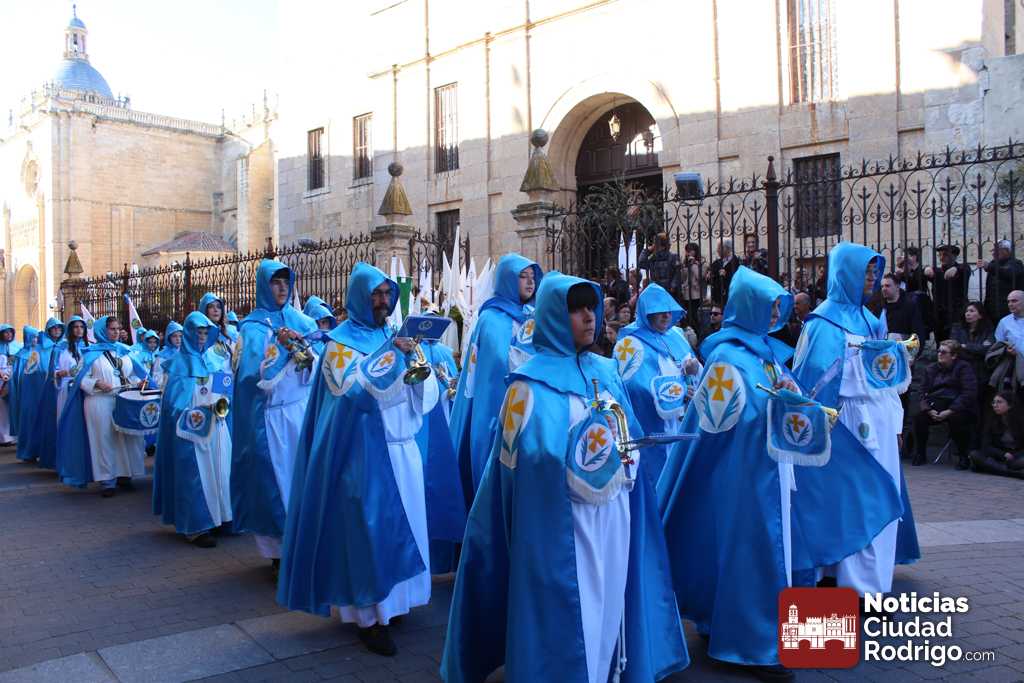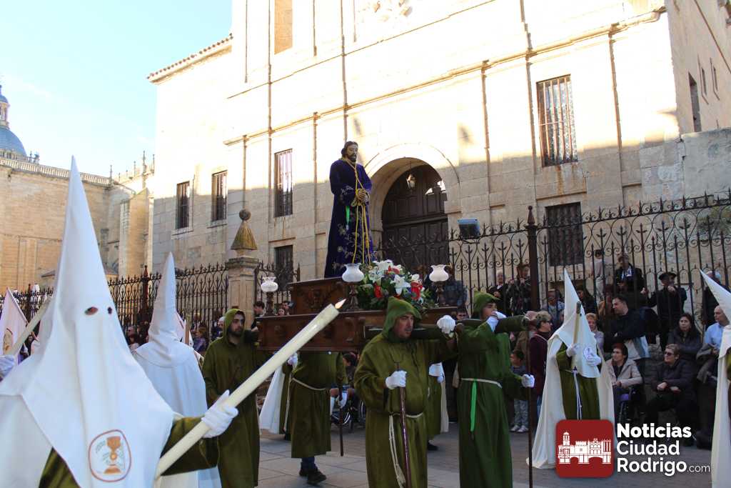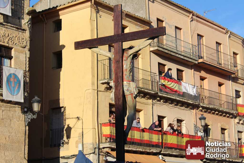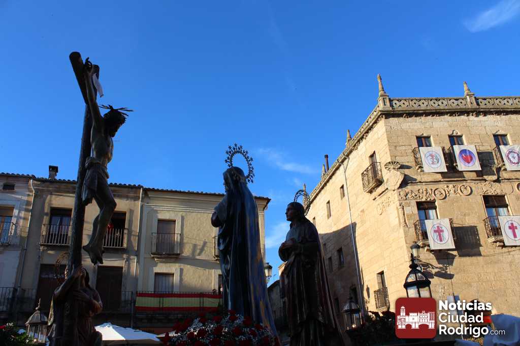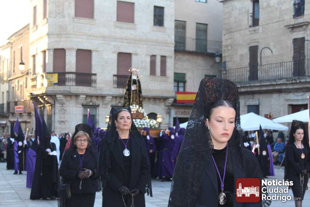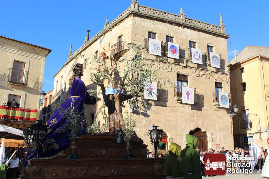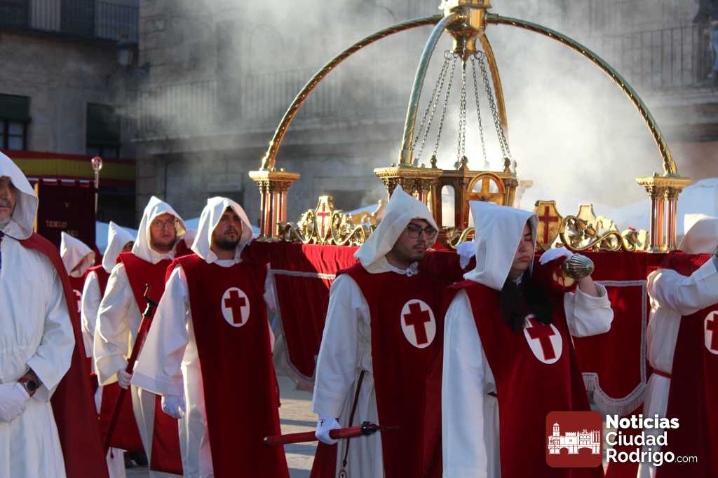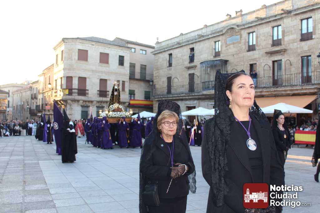 La procesión del Santo Entierro es el punto culmen de la Semana Santa en Ciudad Rodrigo. Todas las procesiones participan en este recorrido que ha comenzado a las siete de la tarde en la Catedral civitatense. La imagen de La Borriquilla acompañada por la Cofradía Jesús Amigo de los Niños ha abierto la comitiva. La cofradía de la Oración del Huerto se ha unido a la altura de Cerralbo y después de forma directa, a diferencia de años anteriores, han ido por la calle Cardenal Pacheco a la plaza Mayor.
