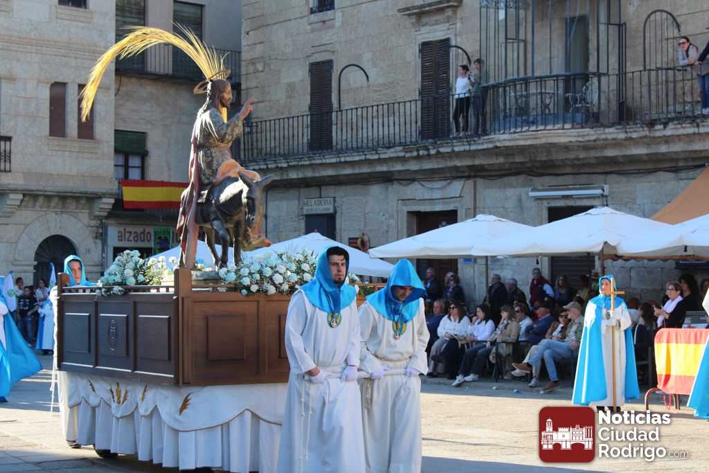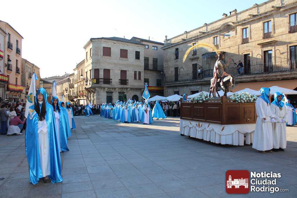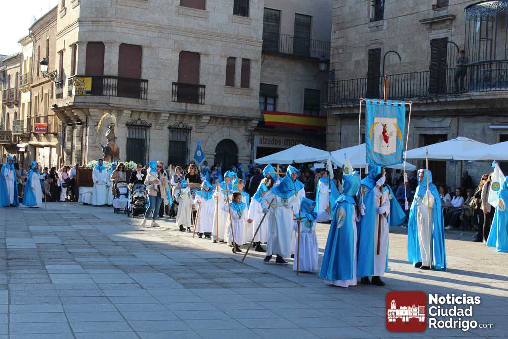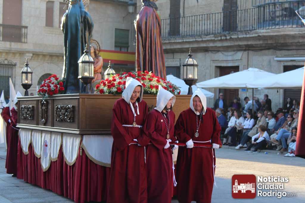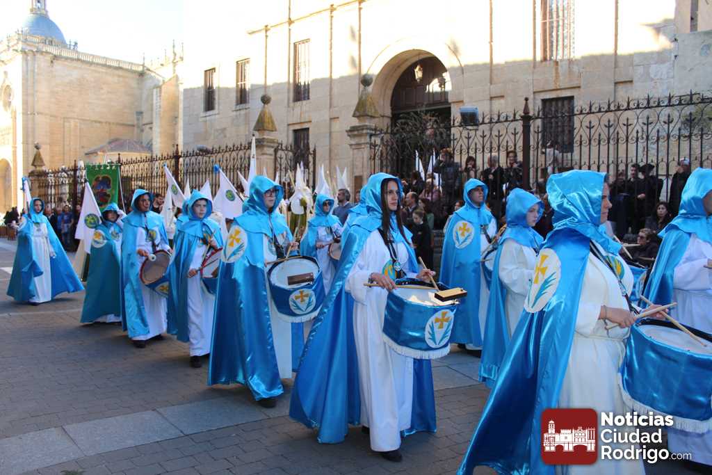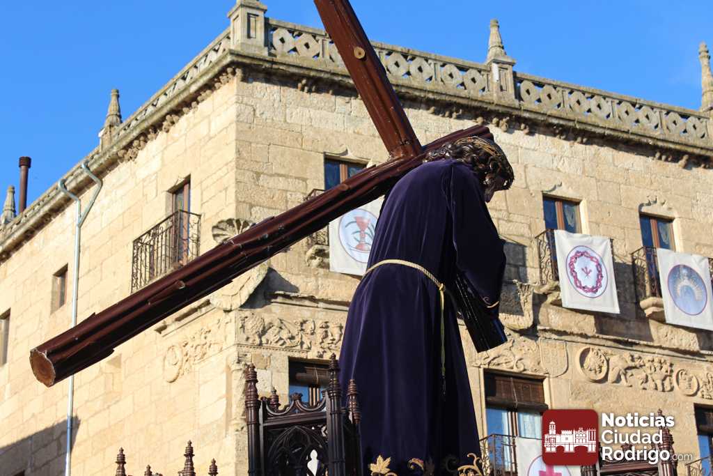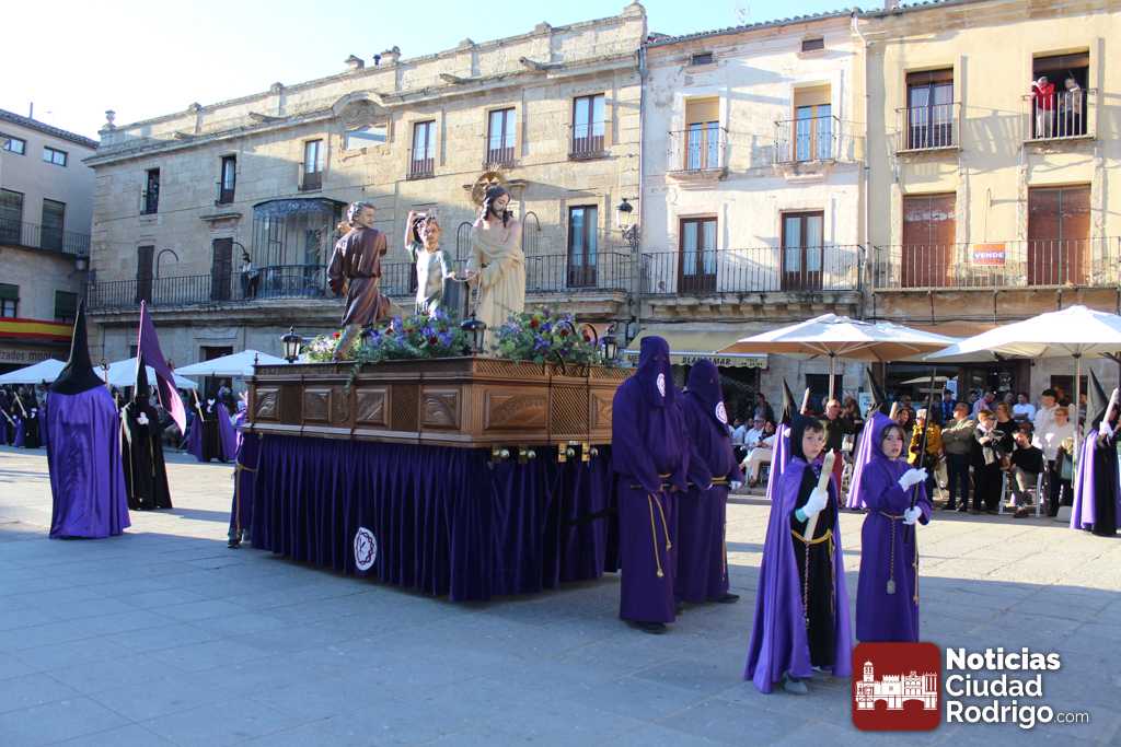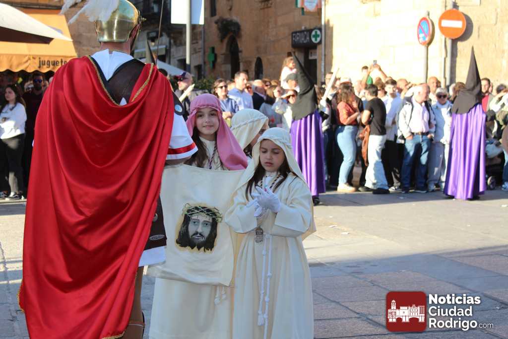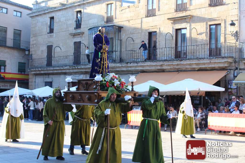 La procesión del Santo Entierro es el punto culmen de la Semana Santa en Ciudad Rodrigo. Todas las procesiones participan en este recorrido que ha comenzado a las siete de la tarde en la Catedral civitatense. La imagen de La Borriquilla acompañada por la Cofradía Jesús Amigo de los Niños ha abierto la comitiva. La cofradía de la Oración del Huerto se ha unido a la altura de Cerralbo y después de forma directa, a diferencia de años anteriores, han ido por la calle Cardenal Pacheco a la plaza Mayor.