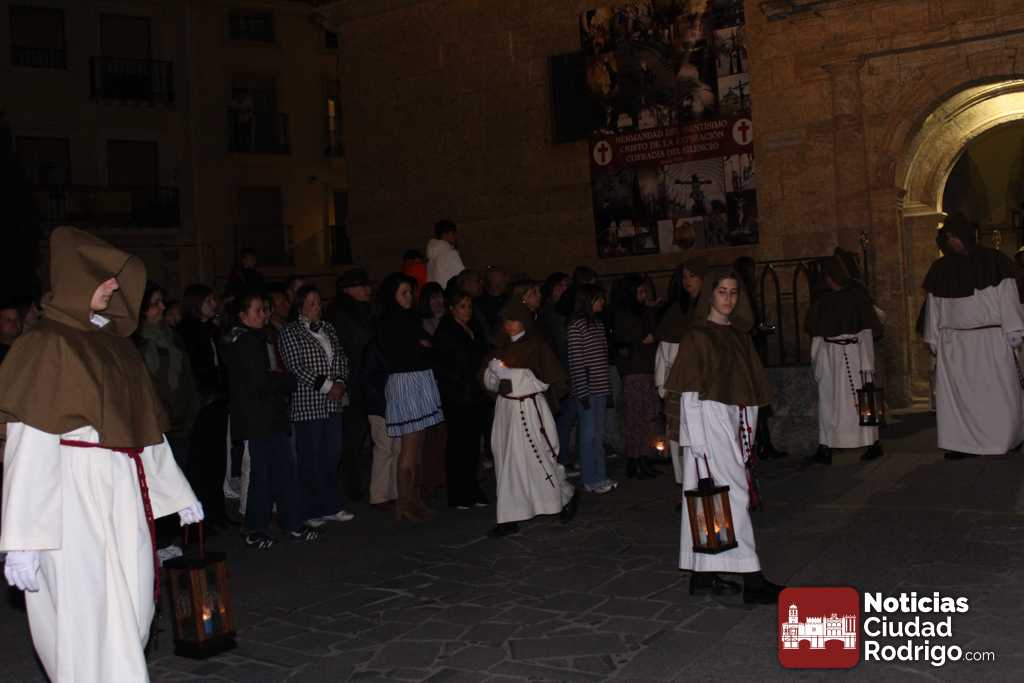 La Cofradía del Silencio organiza desde el pasado año una procesión que tiene como eje central la Sábana Santa, una reproducción del Santo Sudario que se puede ver en la iglesia de San Pedro San Isidoro, de donde parte el acto procesional. Acompañados en esta Semana Santa como novedad con el sonido de la matraca y la carraca además del tambor, la Sábana Santa ha recorrido a oscuras la primera parte del recorrido.