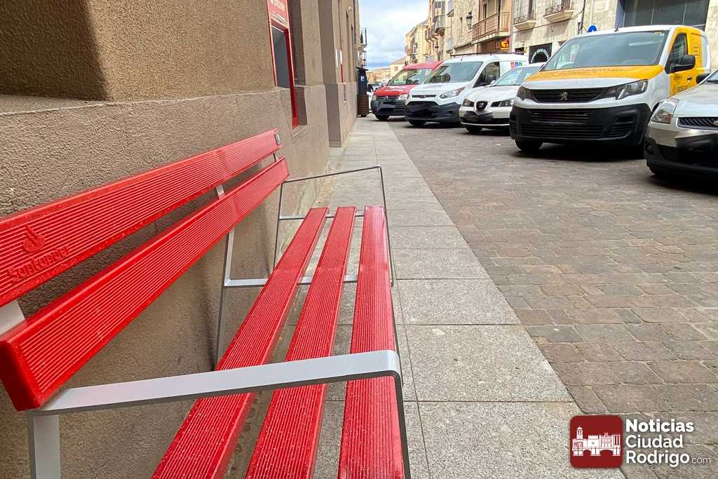En total se han instalado 5 bancos, distribuidos 1 en la Rúa del Sol, junto a la sucursal mirobrigense, y otros 4 en la bajada de la calle Iberia (Cuesta de las Tripas) dirección al rio. Esta ubicación se ha elegido por parte del Ayuntamiento de Ciudad Rodrigo para fomentar el acceso al rio caminando, especialmente por parte de la gente mayor.