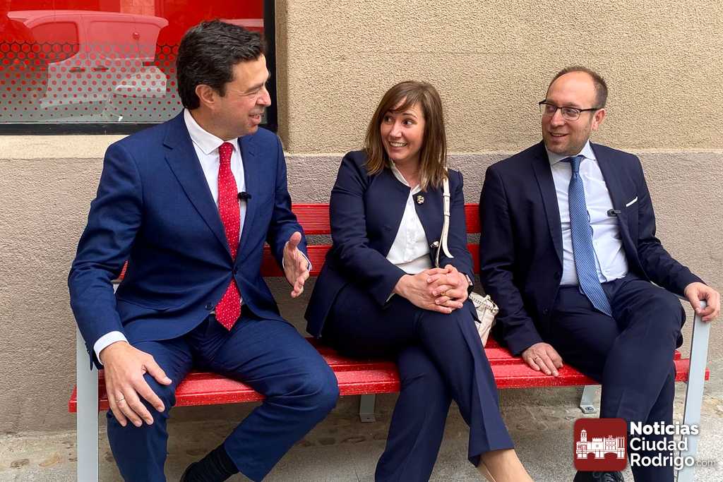 El Ayuntamiento de Ciudad Rodrigo y el Banco Santander han inaugurado durante esta mañana el nuevo mobiliario urbano, hecho con más de 15.000 tarjetas de la entidad bancaria caducadas. Una iniciativa que se ha realizado en diferentes ciudades de España y que tiene objetivos, según la entidad y el consistorio, de carácter medioambiental y de reciclaje.