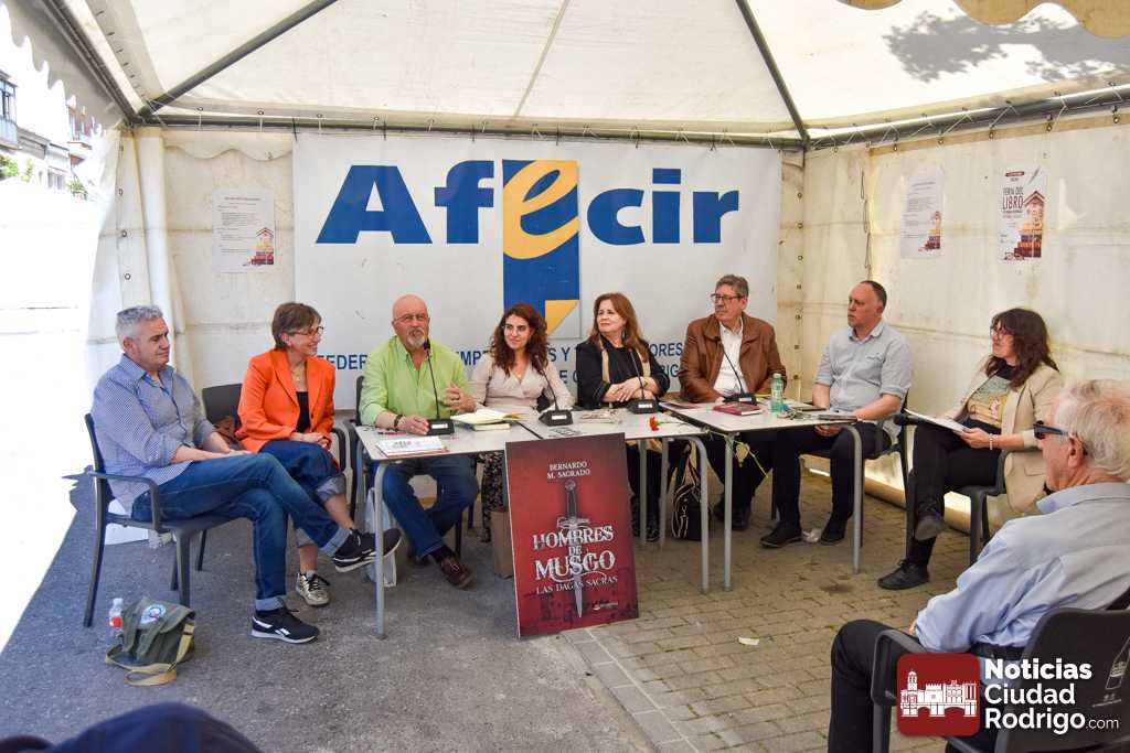Bernardo Martín Sagrado acudió con “Hombres de Musgo”, aportando su experiencia como escritor tras una trayectoria vital marcada por su paso por la Guardia Civil, donde llegó a ser capitán. Formado también en la Universidad de la Experiencia de Salamanca, ha publicado varias novelas y relatos, además de impartir conferencias sobre historia medieval. En su intervención se plantearon cuestiones sobre la presencia de Ciudad Rodrigo en su obra y sus futuras publicaciones.