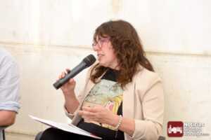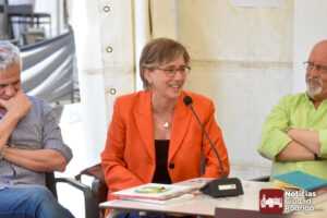 Rosa María Lorenzo llevó al encuentro su obra “Los cursos de verano de la Escuela Madrileña de Cerámica en Salamanca 1922-1942”. Etnógrafa e historiadora, Premio Nacional de Investigación Histórica y Etnográfica en 2013, cuenta con una amplia trayectoria investigadora centrada en el patrimonio cultural inmaterial. Durante la mesa se abordaron cuestiones sobre el valor cultural de la cerámica y la alfarería, así como las motivaciones de su estudio y sus futuros trabajos.