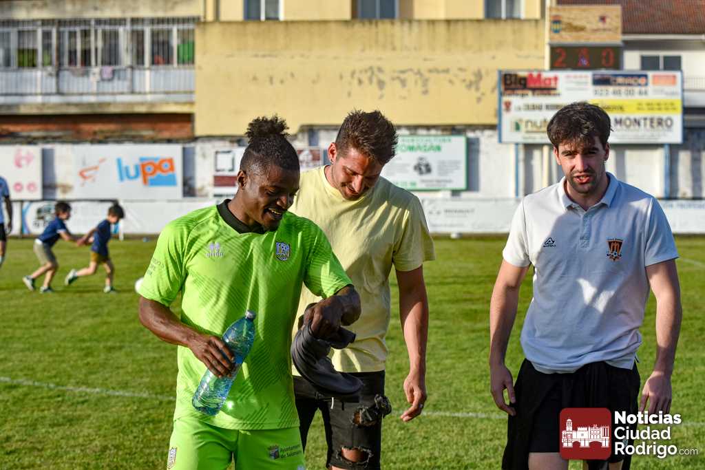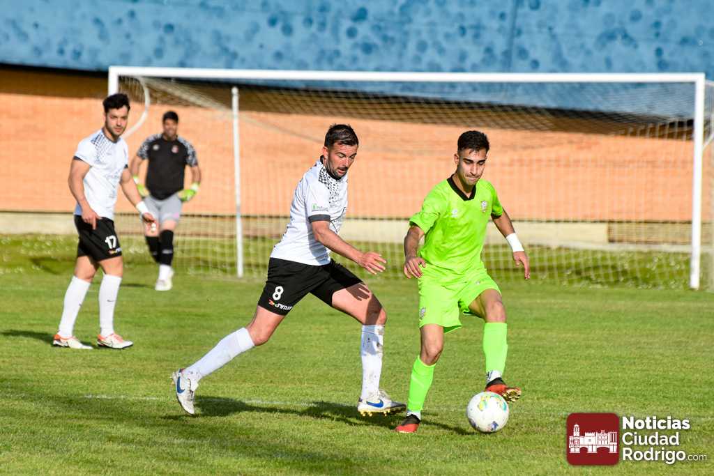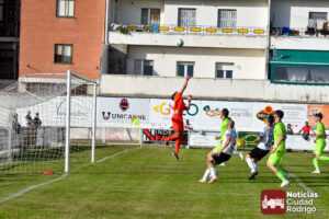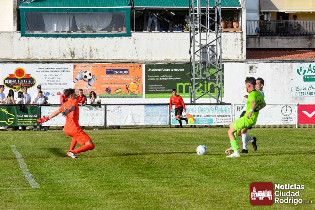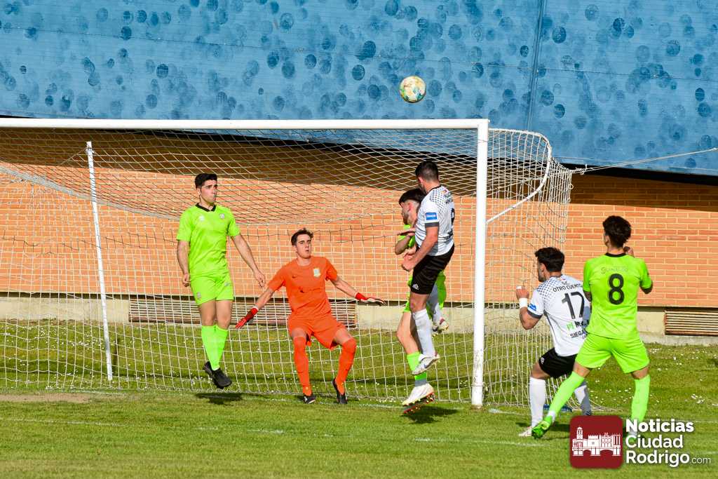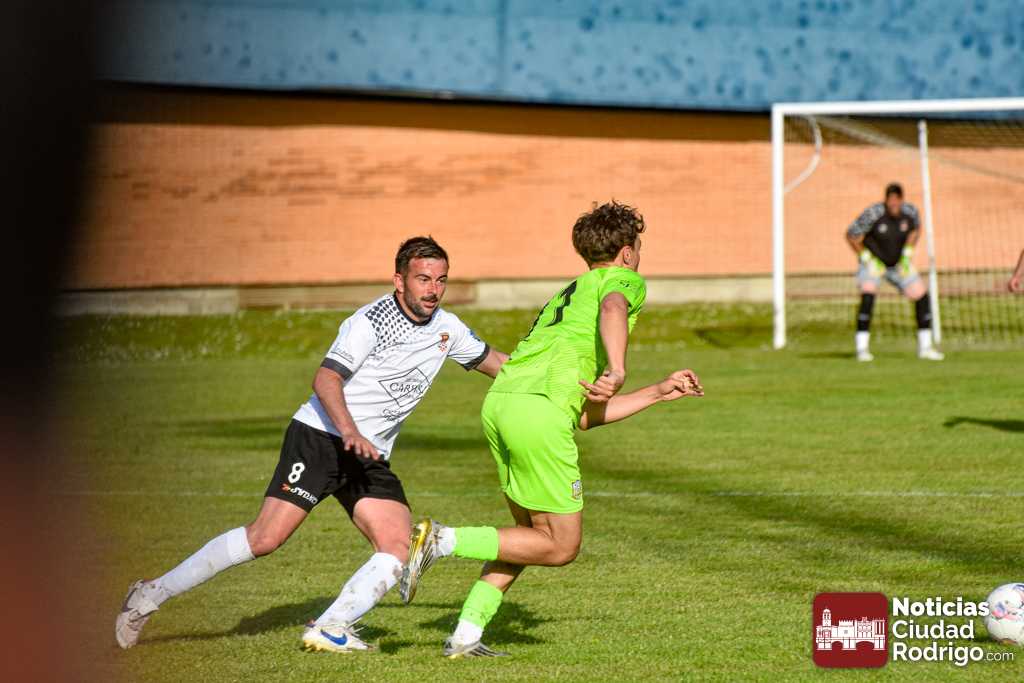 Ya en la segunda mitad salió el Ciudad Rodrigo CF más decidido a por el partido, dando entrada a Diego Astu por Dani Crespo en el descanso, quién tras solo 3 minutos sobre el verde anotaría el 2-0 tras vencer en el mano a mano al meta charro. El gol, curiosamente, aplomó mucho al Ciudad Rodrigo CF durante toda la segunda mitad, teniendo mayor iniciativa un Helmántico que está en una situación límite por la permanencia, aunque sin llegar a generar apenas algún tiro a puerta.