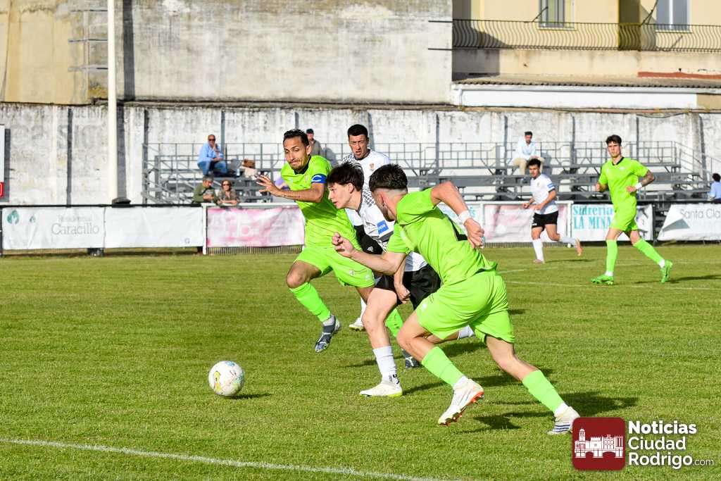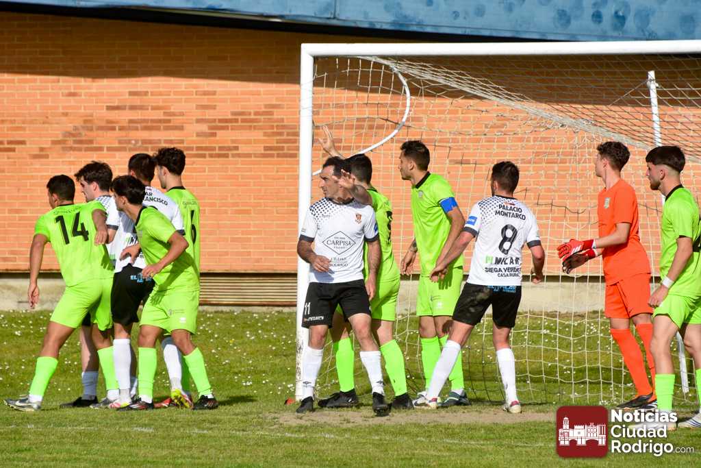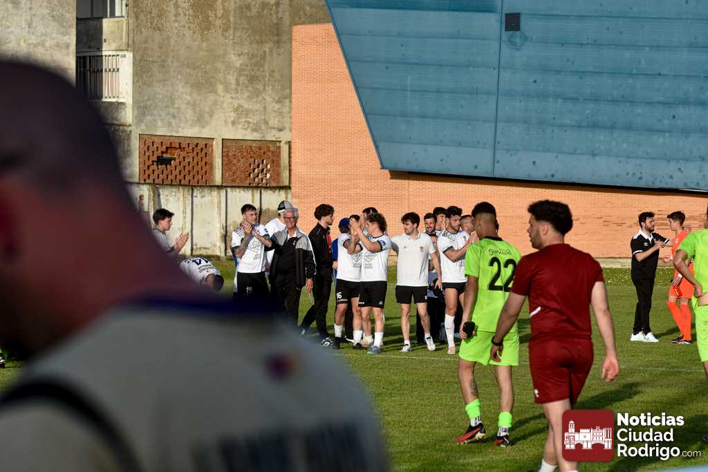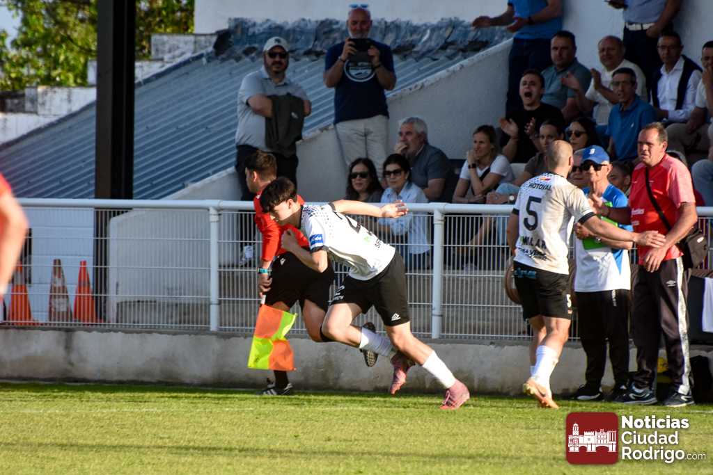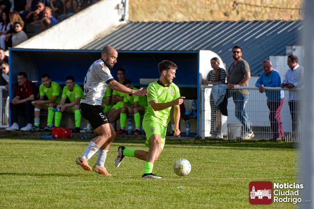 Ya en la segunda mitad salió el Ciudad Rodrigo CF más decidido a por el partido, dando entrada a Diego Astu por Dani Crespo en el descanso, quién tras solo 3 minutos sobre el verde anotaría el 2-0 tras vencer en el mano a mano al meta charro. El gol, curiosamente, aplomó mucho al Ciudad Rodrigo CF durante toda la segunda mitad, teniendo mayor iniciativa un Helmántico que está en una situación límite por la permanencia, aunque sin llegar a generar apenas algún tiro a puerta.