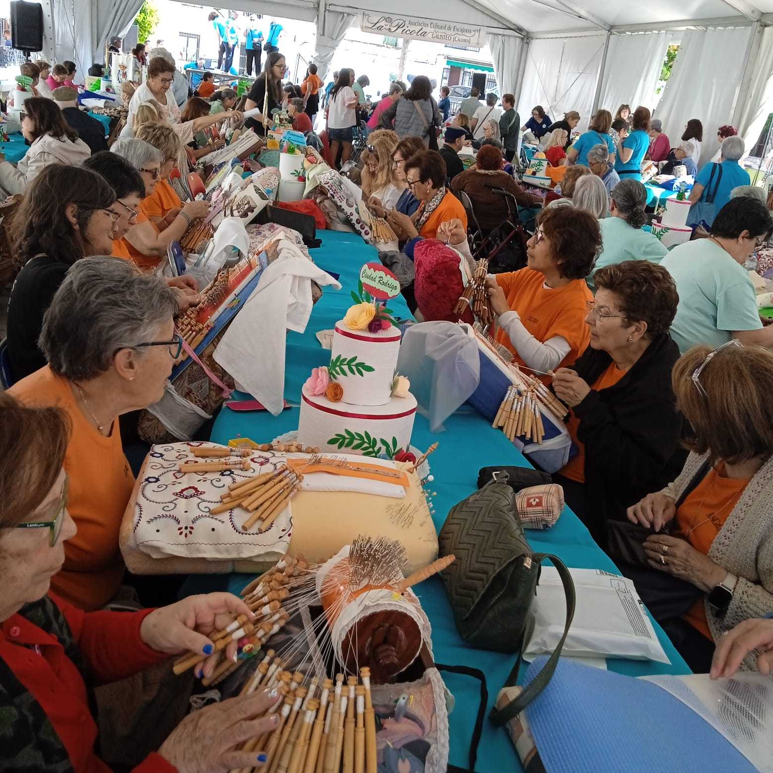 El grupo de bolillos de la asociación «Amanecer» de Ciudad Rodrigo ha participado en el día de hoy en el X Encuentro de Encajeras de Galisteo (Cáceres), en el que han participado 300 mujeres de diferentes puntos de Extremadura, Vigo, Salamanca, Soria, Madrid y Andalucía.