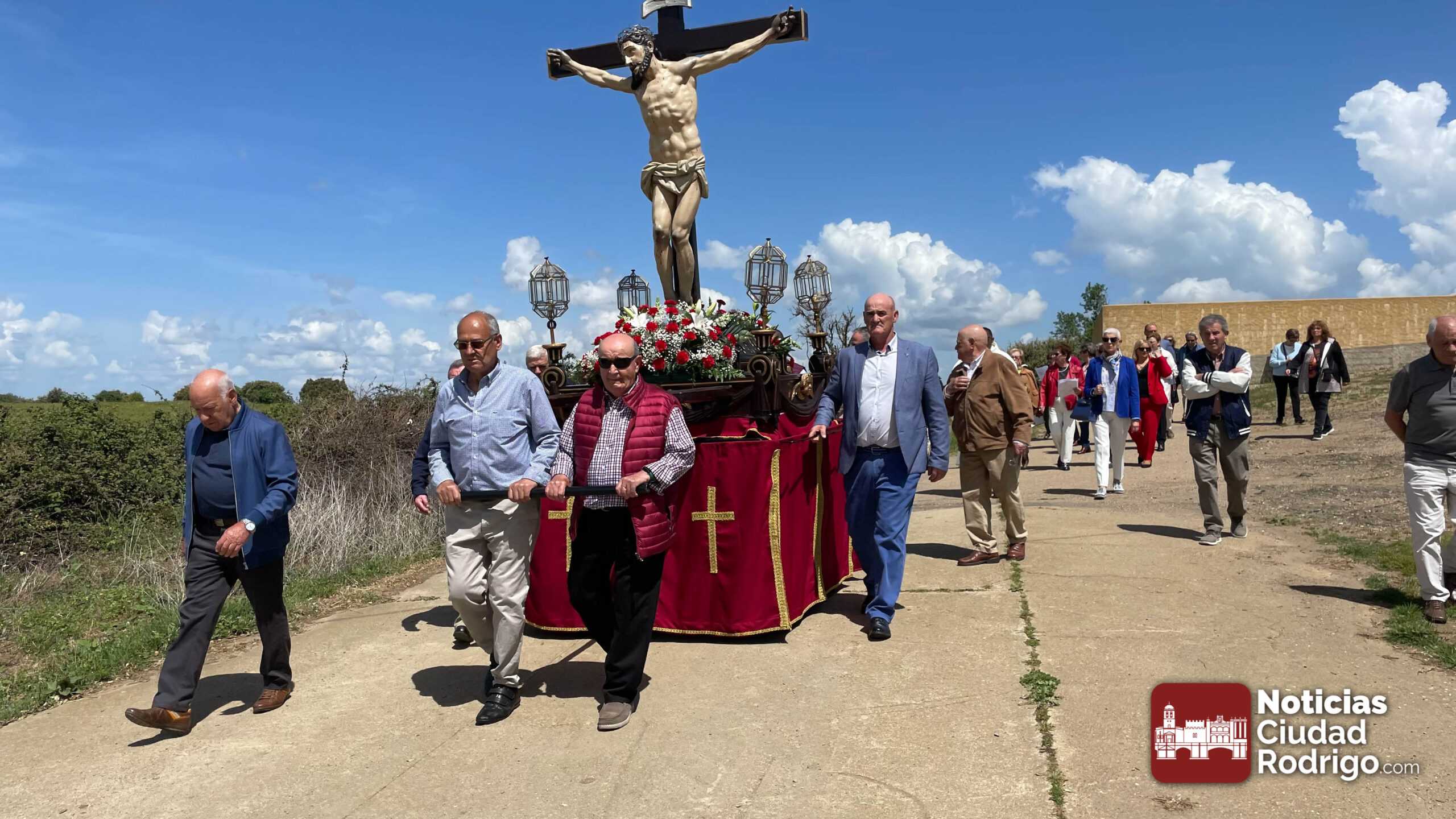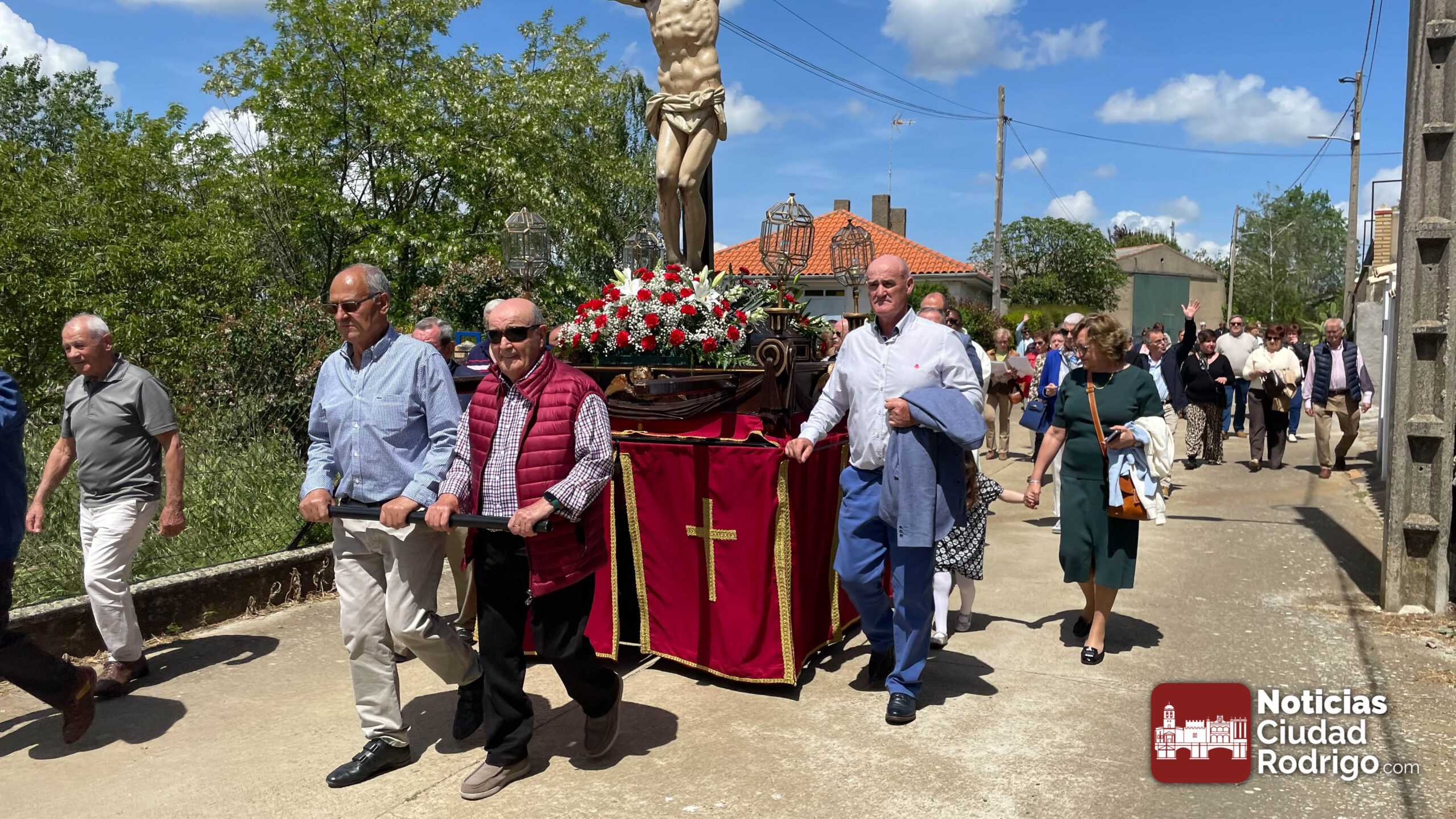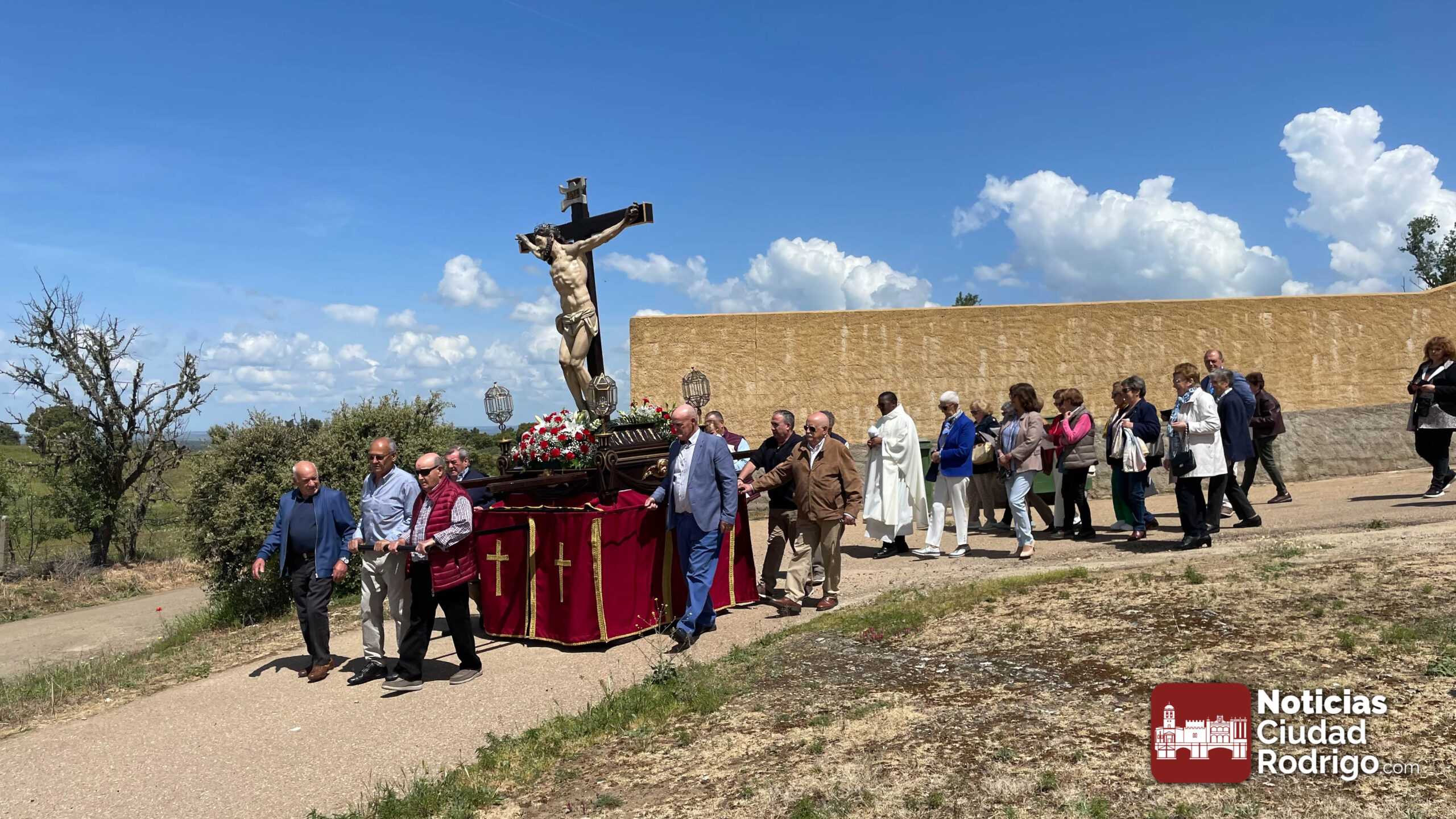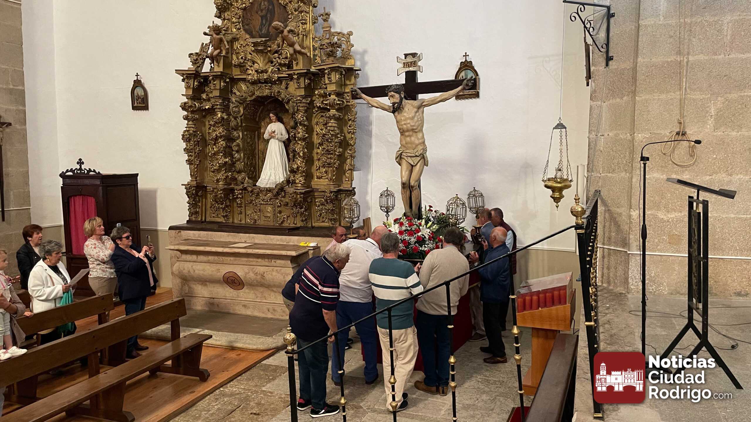 Tras la misa de una, ha tenido lugar el acto procesional de descenso de la imagen del Santo Cristo acompañado por feligreses y por las canciones del coro parroquial. El Santo Cristo volverá a salir en procesión el próximo domingo, 3 de mayo, día de la Santa Cruz.