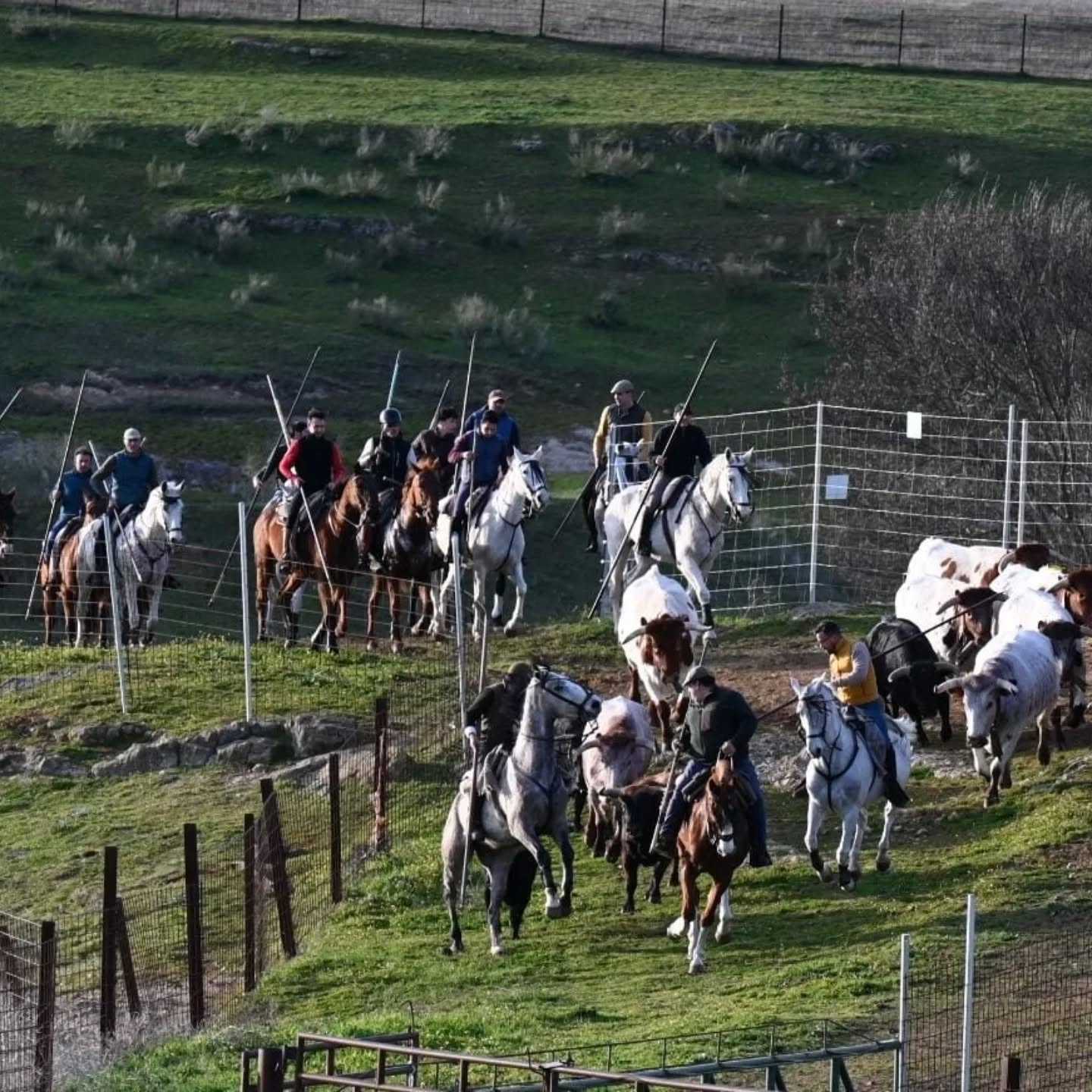 Preparando el encierro de campo del domingo de Carnaval